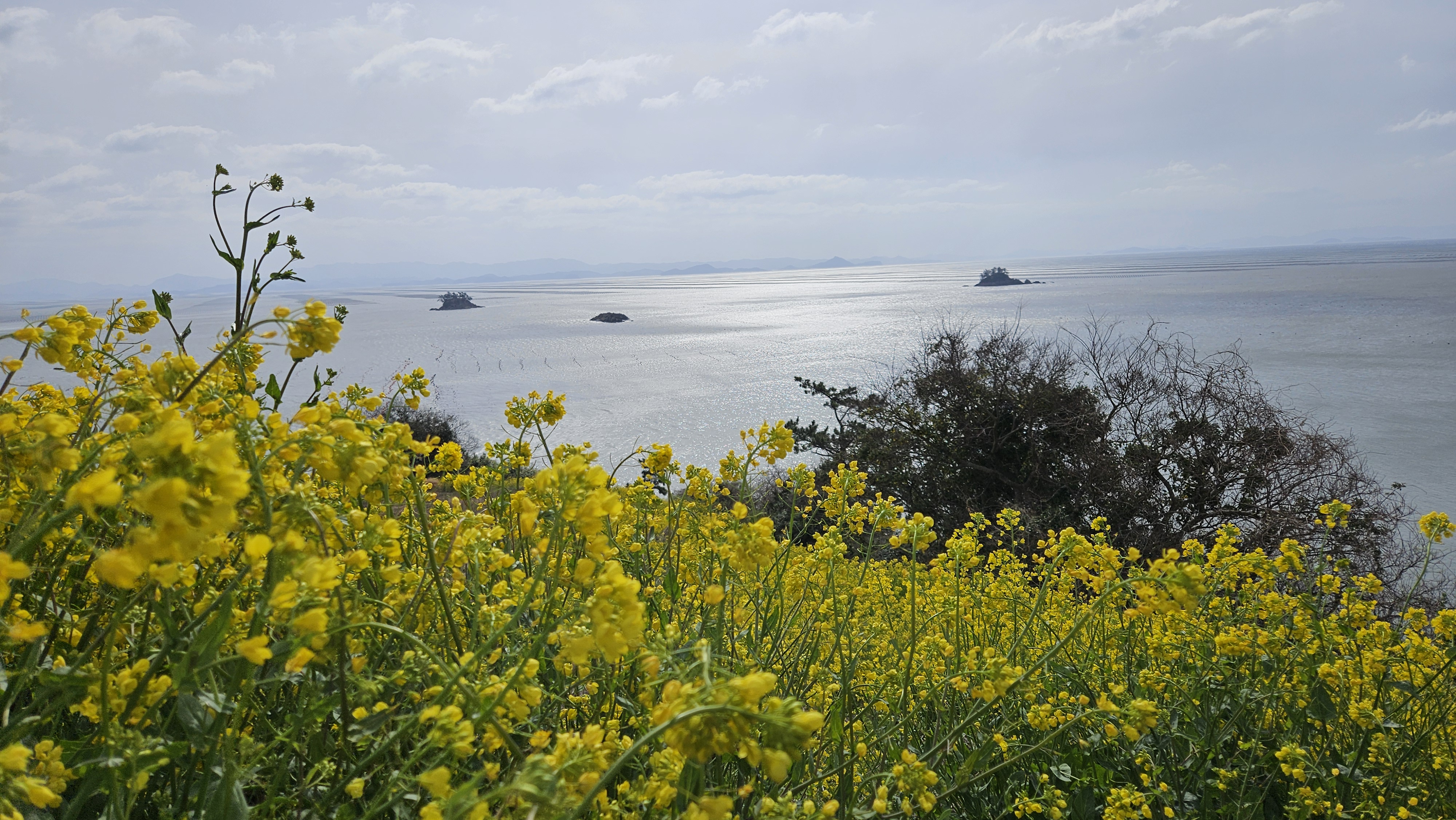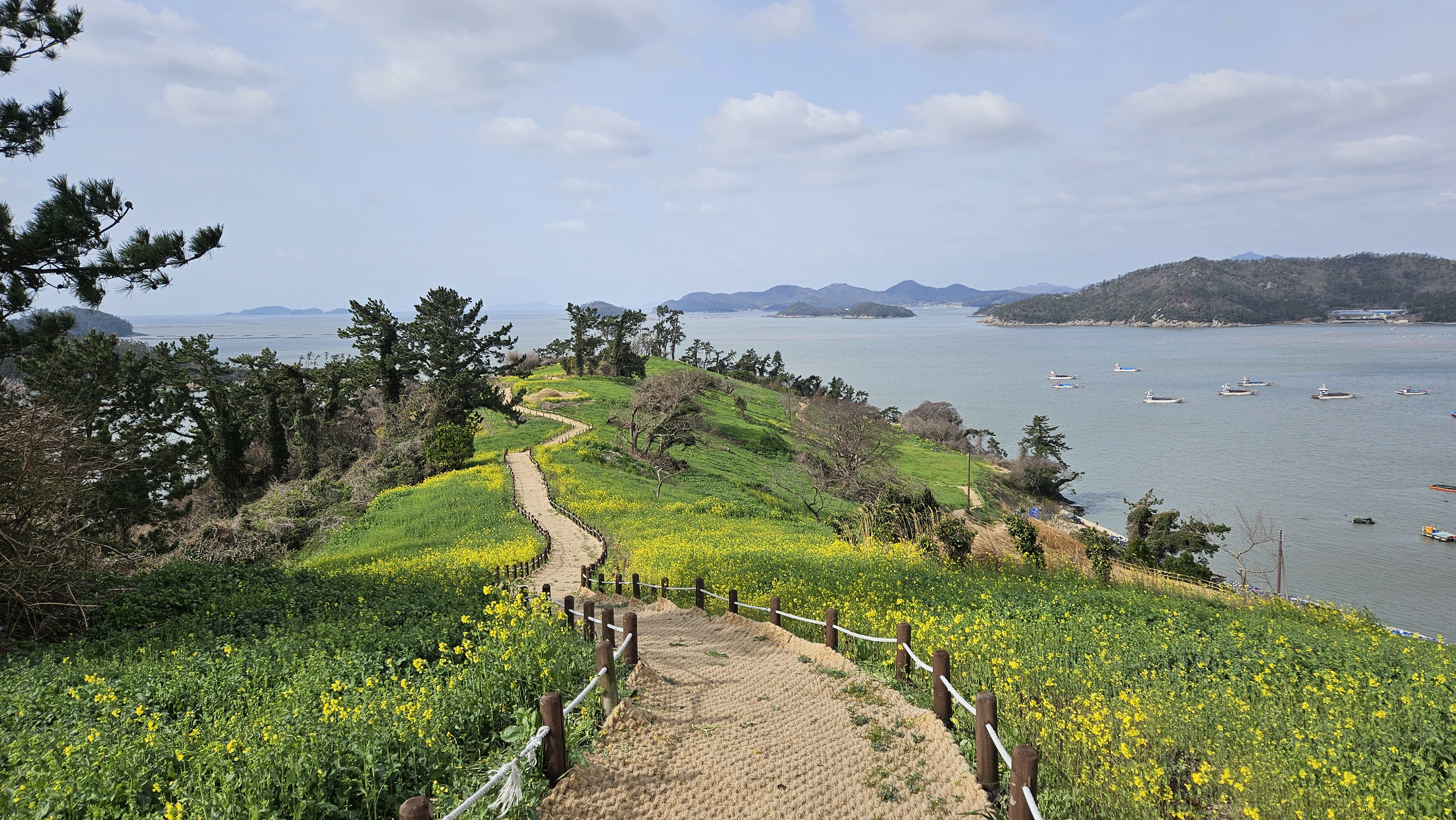 소망의 길 주변에 하늘과 인근 산 바다와 섬이 어울려