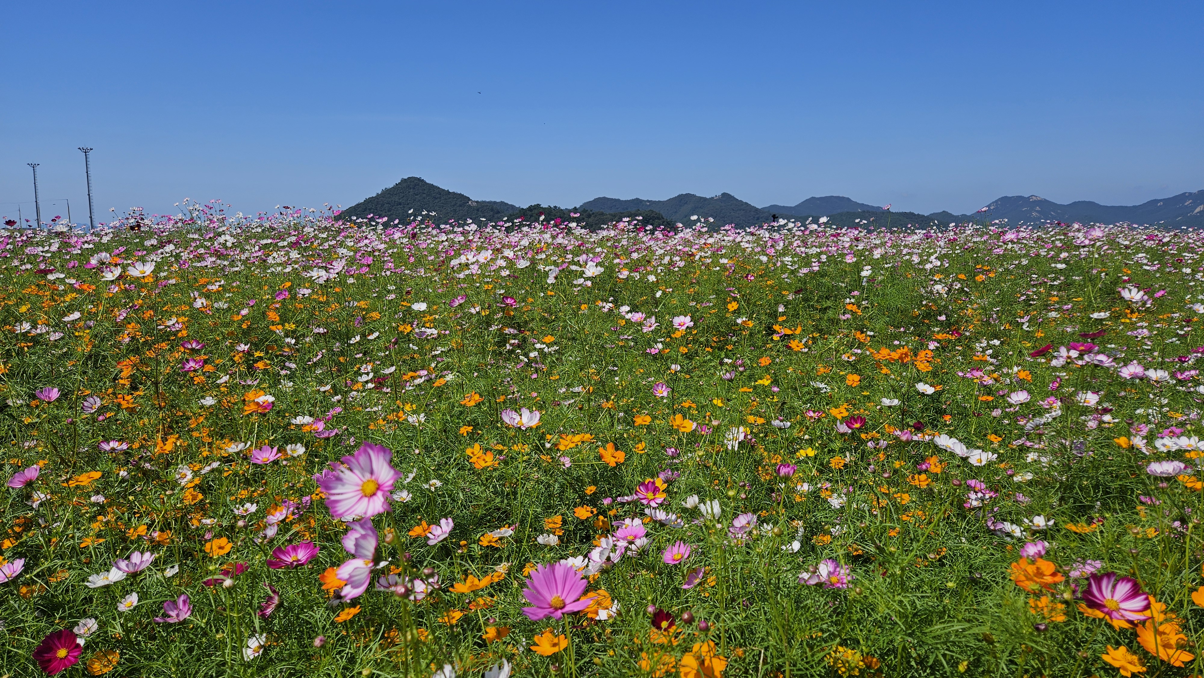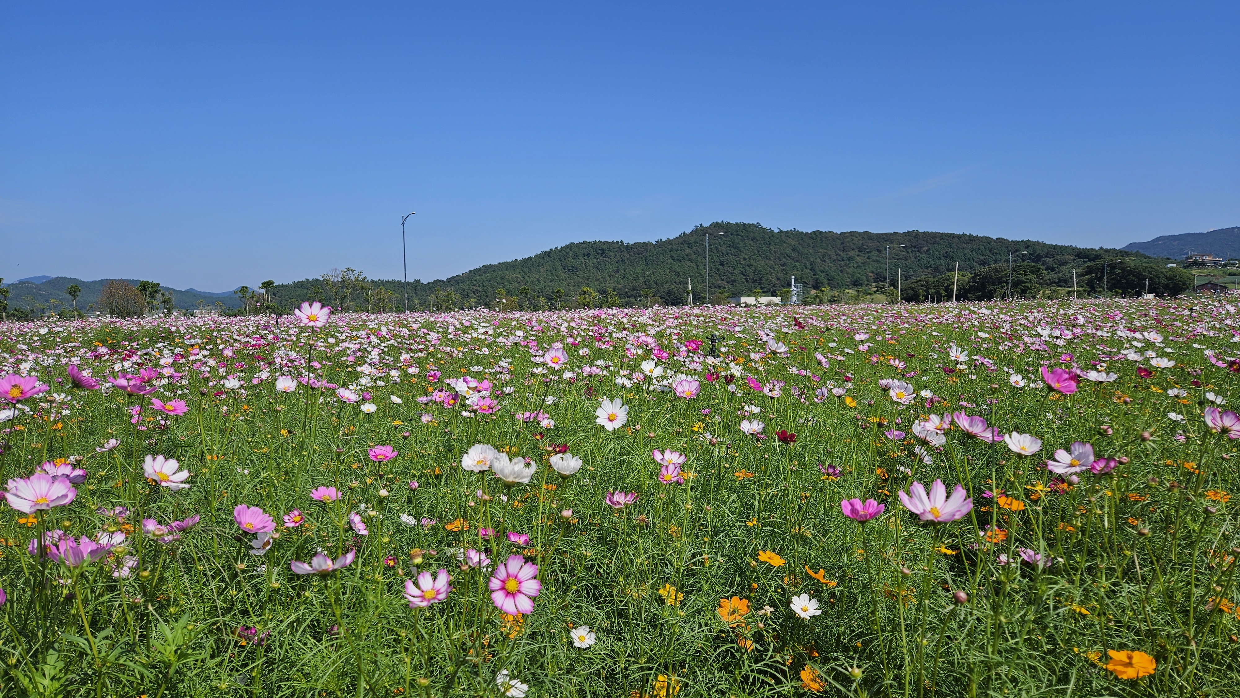 10월 초하루, 진도항에서 근무 중 점심을 마친 뒤 고개를 들어 바라본 가을 하늘은 유난히도 푸르고 맑았습니다. 바로 앞 바다의 고요한 물결과 더불어, 재래종 코스모스와 황화 코스모스가 어울려 활짝 피어 있는 모습은 진도의 가을을 더욱 아름답게 수놓고 있었습니다.
