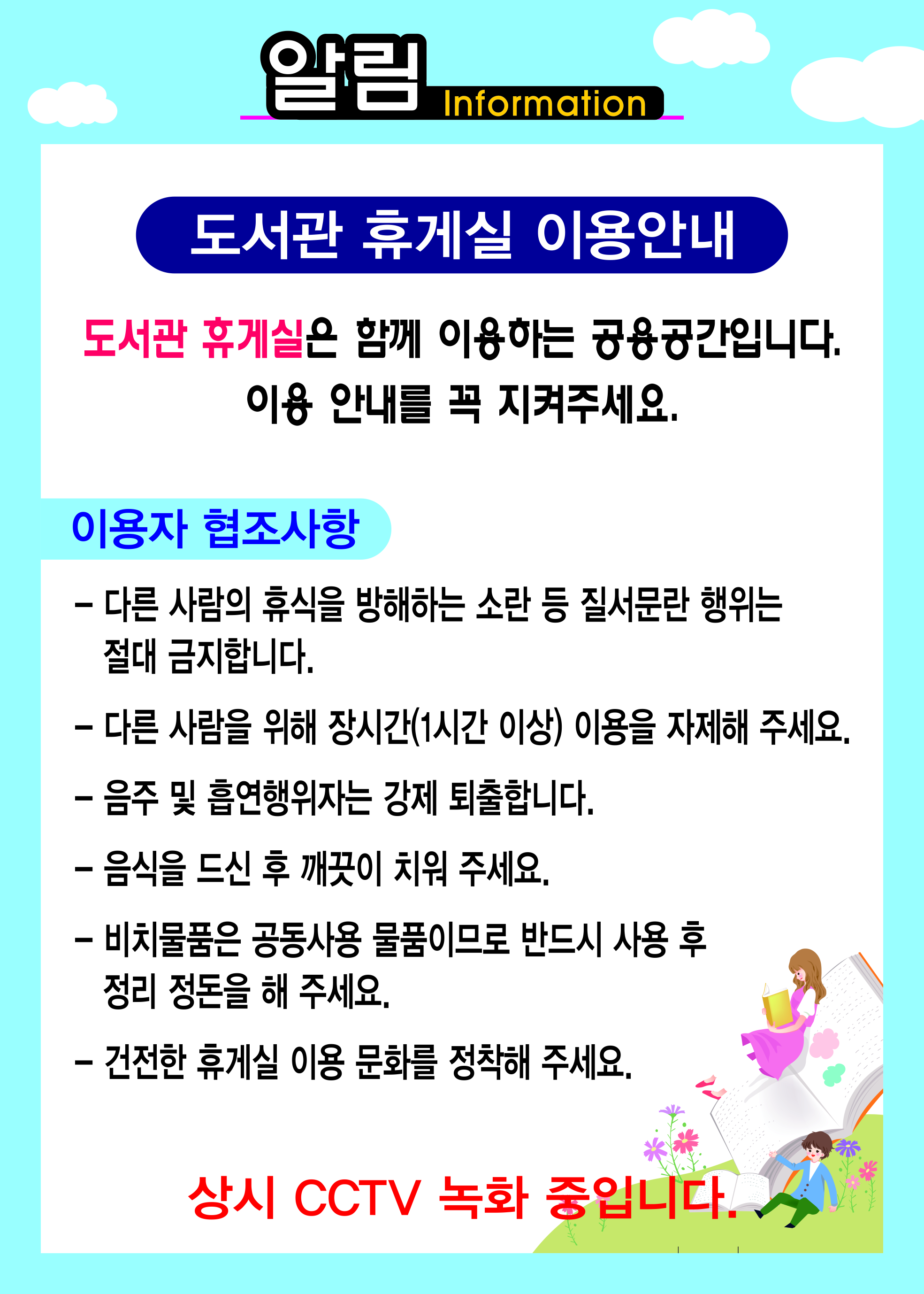 행사갤러리 현재메뉴 H > 문화강좌 > 행사갤러리 링크복사 인쇄 도서관 휴게실 조회수 : 262 첨부파일 철마도서관 휴게실이용안내.jpg (1.91 MB) 다운로드 첨부파일 철마도서관휴게실사진.jpg (4.28 MB) 다운로드