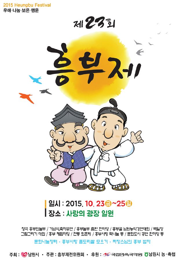 열린게시판 현재메뉴 H > 참여마당 > 열린게시판 링크복사 인쇄 <제23회 남원 흥부제>안내 운영자 조회수 : 1754 첨부파일 제23회 남원 흥부제.JPG (82.92 KB) 다운로드 첨부파일 리플릿_1.pdf (1.07 MB) 다운로드 첨부파일 리플릿_2.pdf (2.10 MB) 다운로드 ※ 첨부파일 : 리플릿 1, 2