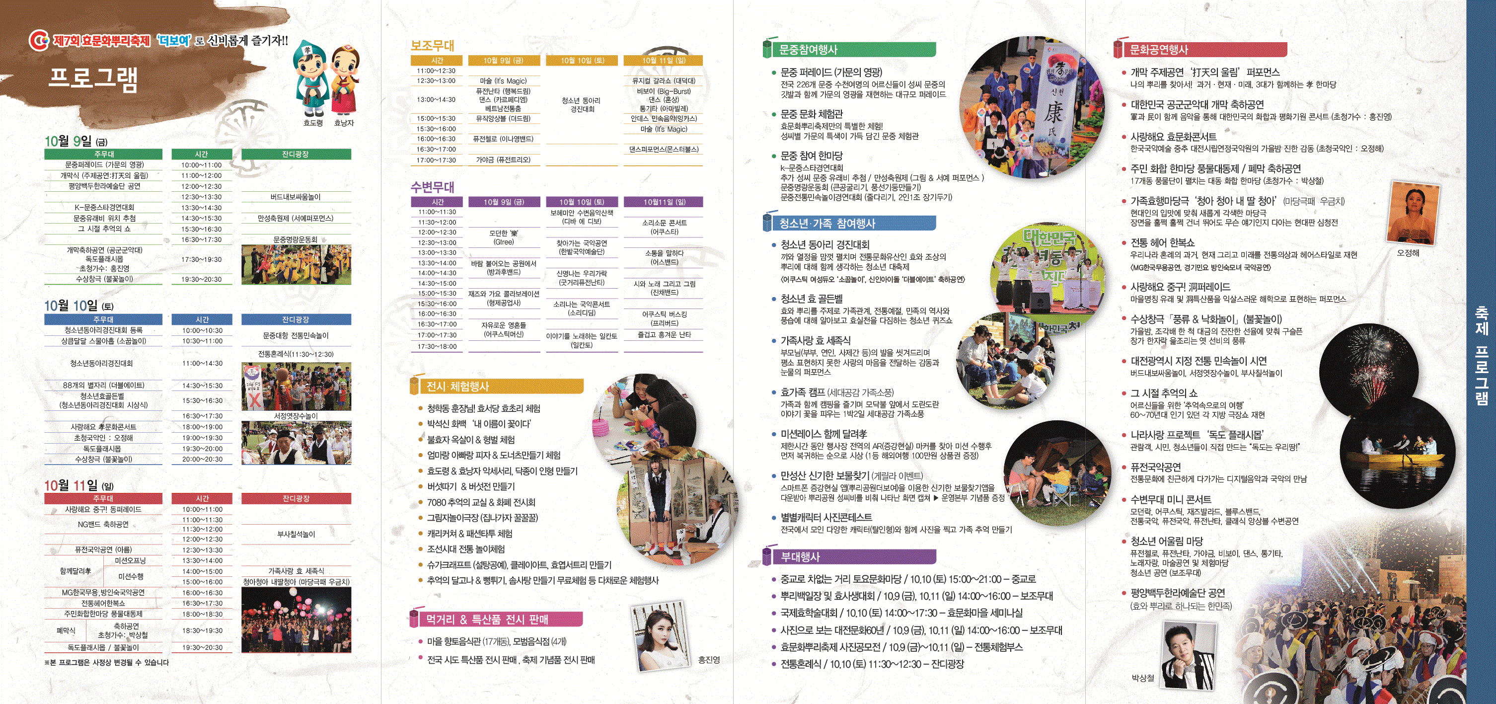 열린게시판 현재메뉴 H > 참여마당 > 열린게시판 링크복사 인쇄 『제7회 대전효문화 뿌리축제』안내 운영자 조회수 : 1697 첨부파일 제7회 대전효문화뿌리축제 팜플렛 (뒷면)_498F_tmp.gif (1.13 MB) 다운로드 ※클릭하면 커집니다.