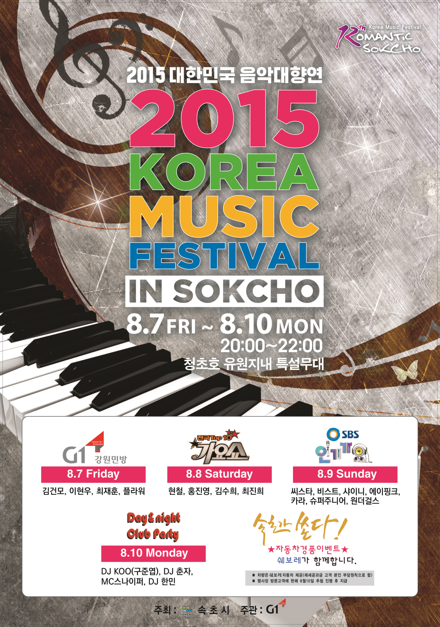 속초시 한여름밤 음악축제인 <2015 대한민국 음악대향연>이 오는 8.7(금) ~ 8.10(월)
