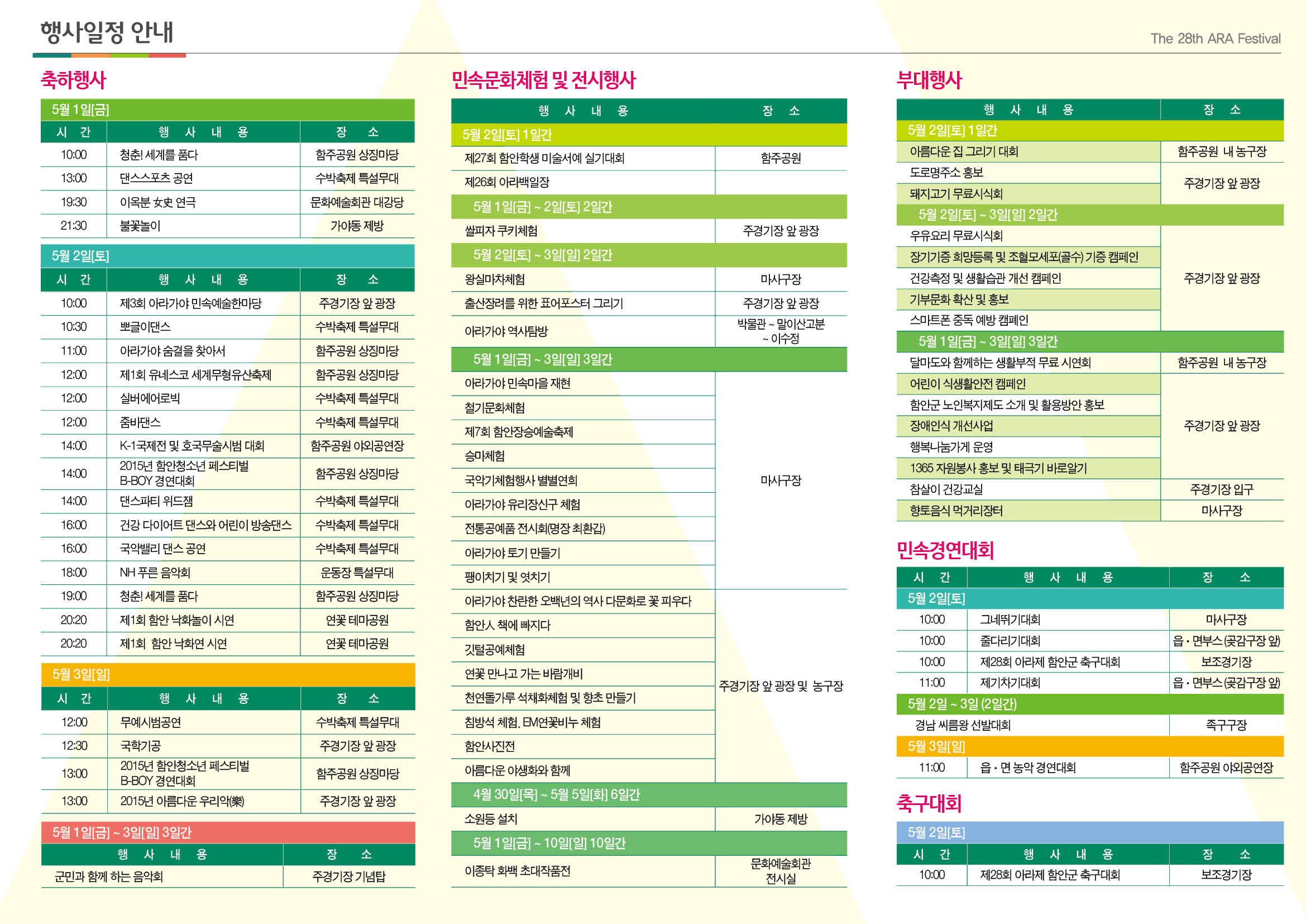 열린게시판 현재메뉴 H > 참여마당 > 열린게시판 링크복사 인쇄 2015 함안 군민의 날 및 아라제 안내 운영자 조회수 : 1773 첨부파일 ~MG5.jpg (739.52 KB) 다운로드 첨부파일 ~MGVxPn.jpg (409.76 KB) 다운로드 첨부파일 ~MGlZ.jpg (466.08 KB) 다운로드