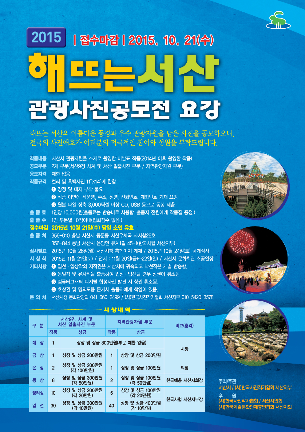 열린게시판 현재메뉴 H > 참여마당 > 열린게시판 링크복사 인쇄 2015 해뜨는 서산 관광사진 공모전 안내 운영자 조회수 : 1564 첨부파일 ~MGUd6XLM.jpg (1.32 MB) 다운로드