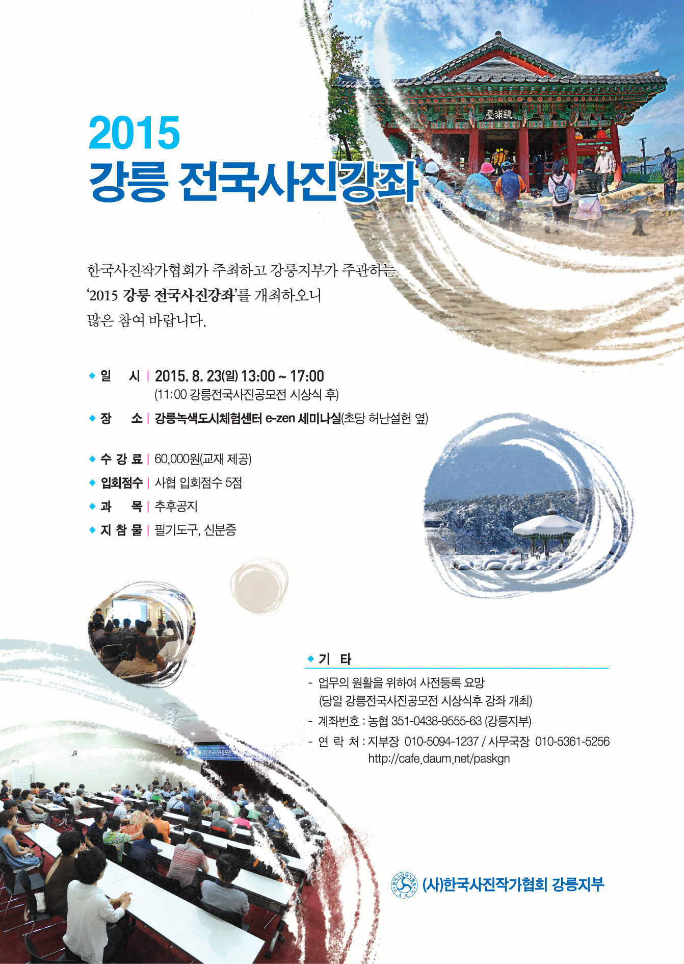 열린게시판 현재메뉴 H > 참여마당 > 열린게시판 링크복사 인쇄 2015 강릉전국사진강좌 안내 운영자 조회수 : 1511 첨부파일 ~MGO.jpg (1.37 MB) 다운로드 첨부파일 ~MGO.jpg (1.37 MB) 다운로드 첨부파일 ~MGO.jpg (1.37 MB) 다운로드