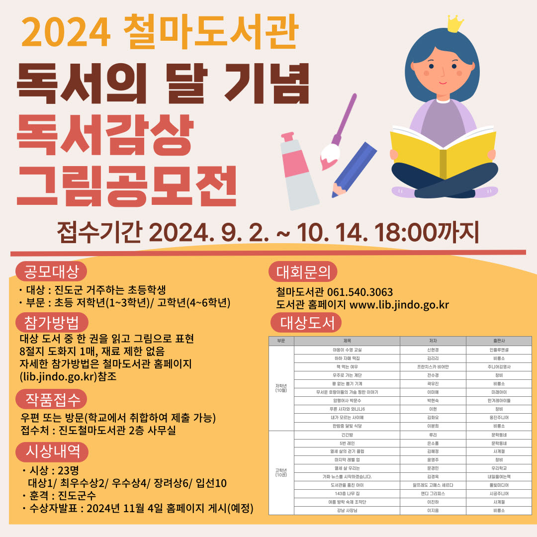 - 첨부파일 2024년 독서의달 기념 독서 감상 그림 공모전 홍보포스터.jpg (279.80 KB) 다운로드