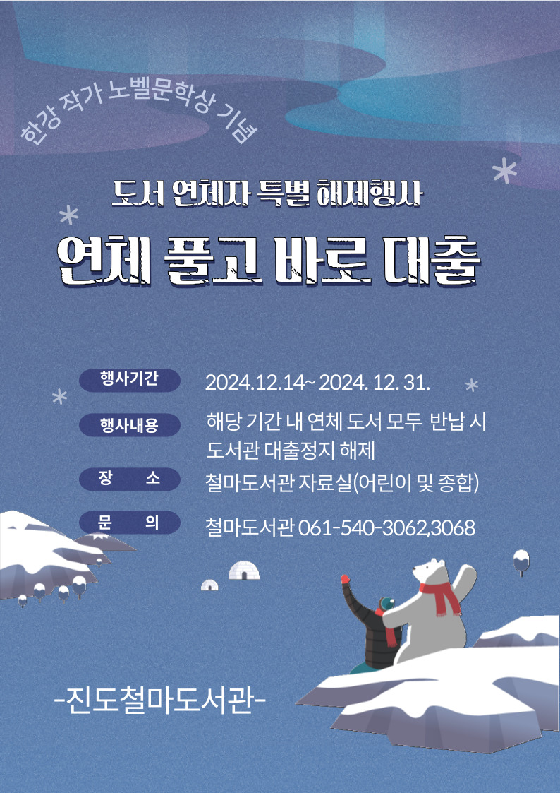 한강 노벨문학상 수상 기념 「도서 연체자 특별 해제 행사」운영 안내