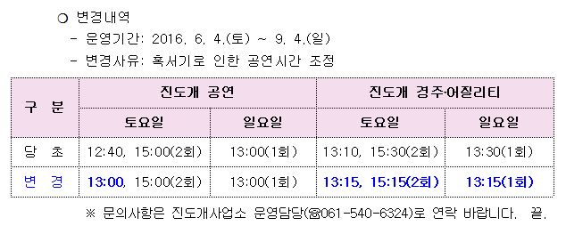 <진도개테마파크 주말 공연시간 변경>안내