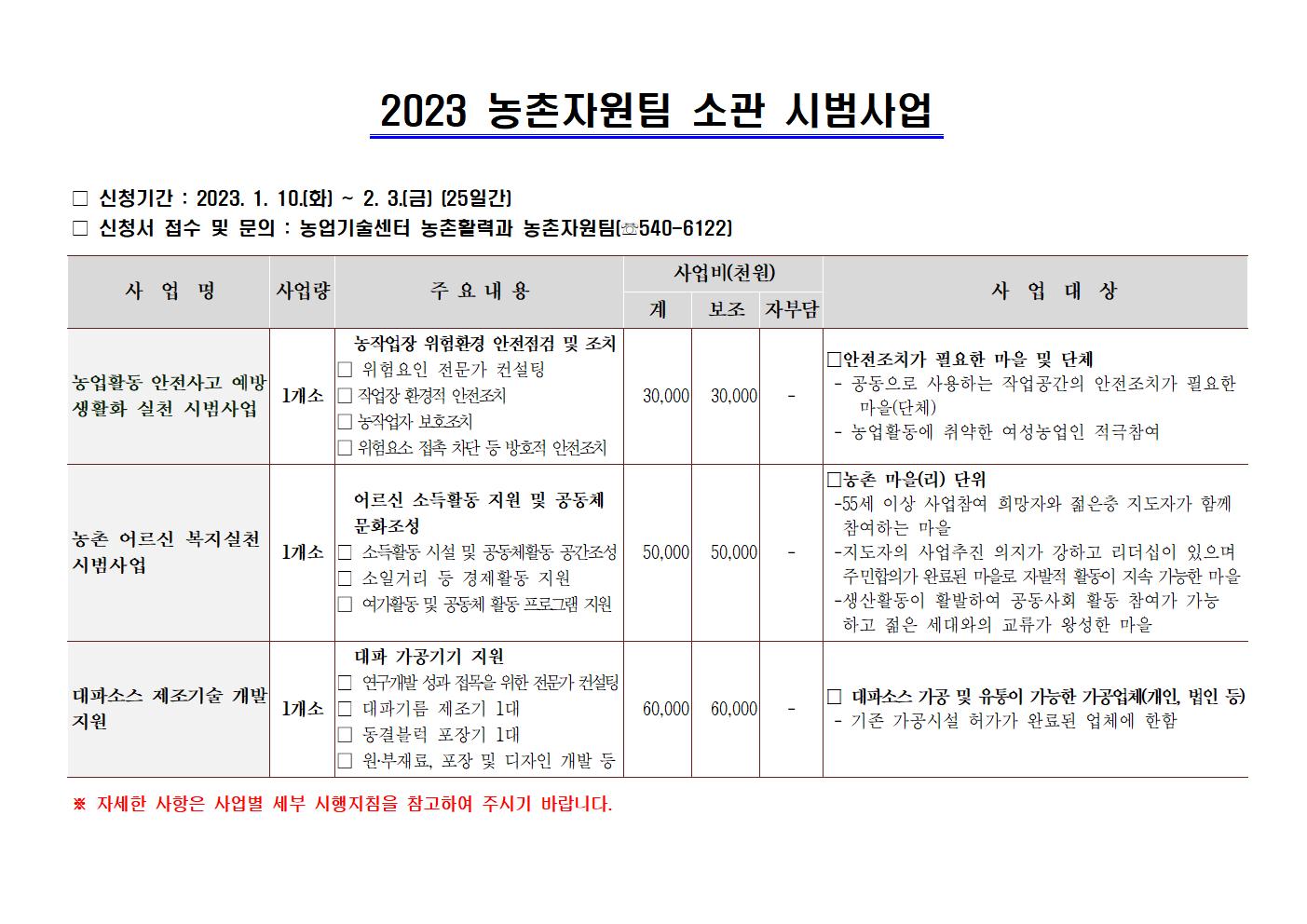 - 사 업 명 : 2023년 농촌자원팀 소관 시범사업