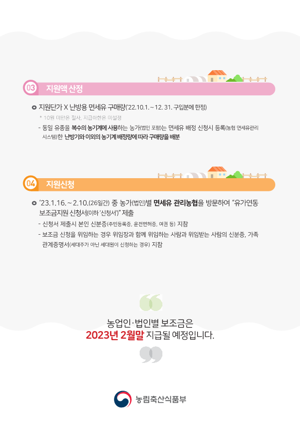 * 경영비 부담 및 물가상승을 우려를 완화하기 위한 한시적인 지원사업입니다.