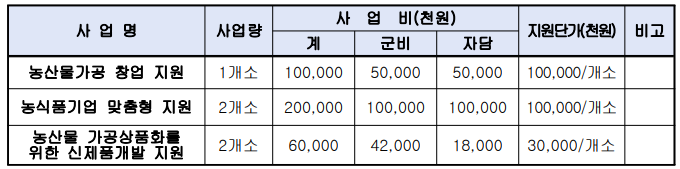 □ 2024년 농산물 가공분야 지원사업 신청개요 □