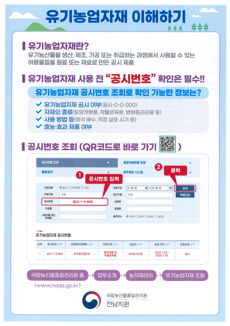 * 접속경로: www.naqs.go.kr → 업무소개농자재관리유기농업자재 공시 조회