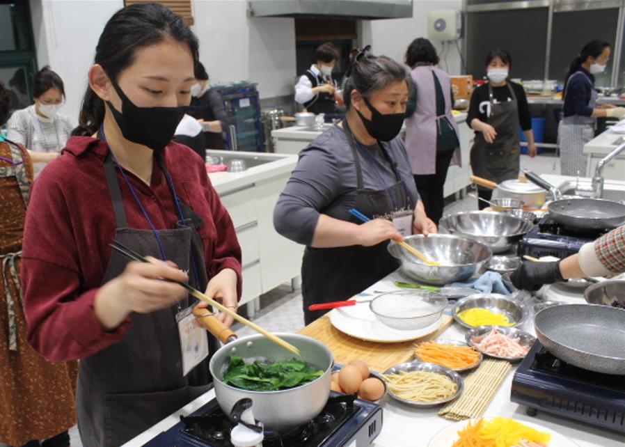 전복영양죽, 흑미달걀말이김밥, 대파치즈떡볶이, 울금크림파스타 등 지역특산물을 활용해 교육생들에게 요리 기술을 전수한다. 또 새로운 레시피 개발 등을 진혜운 조리기능장이 강사로 참여해 ‘쿠킹 클래스 기초반’ 교육을 실시하고 있다.