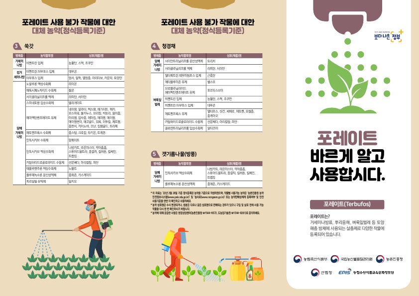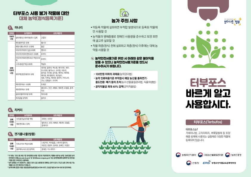 터부포스 및 포레이트 농약 사용주의 안내