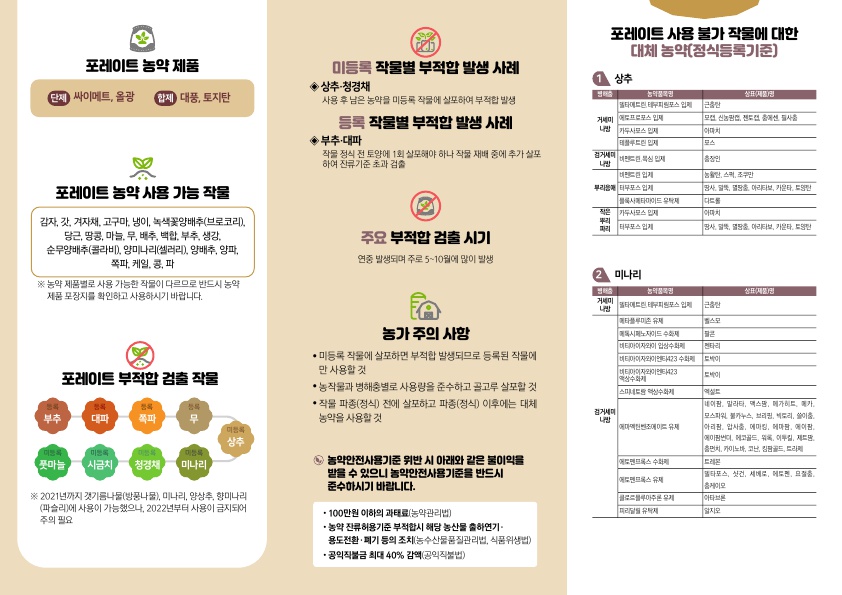 농업인께서는 해당 농약을 사용이 등록된 작물에만 사용하시고 안전사용기준을 꼭 준수하여 주시기 바랍니다.