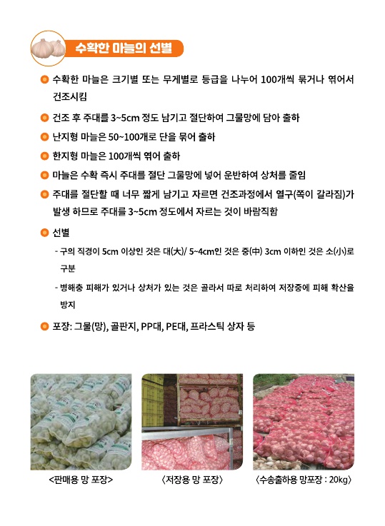 마늘 수확 후 관리 및 저장