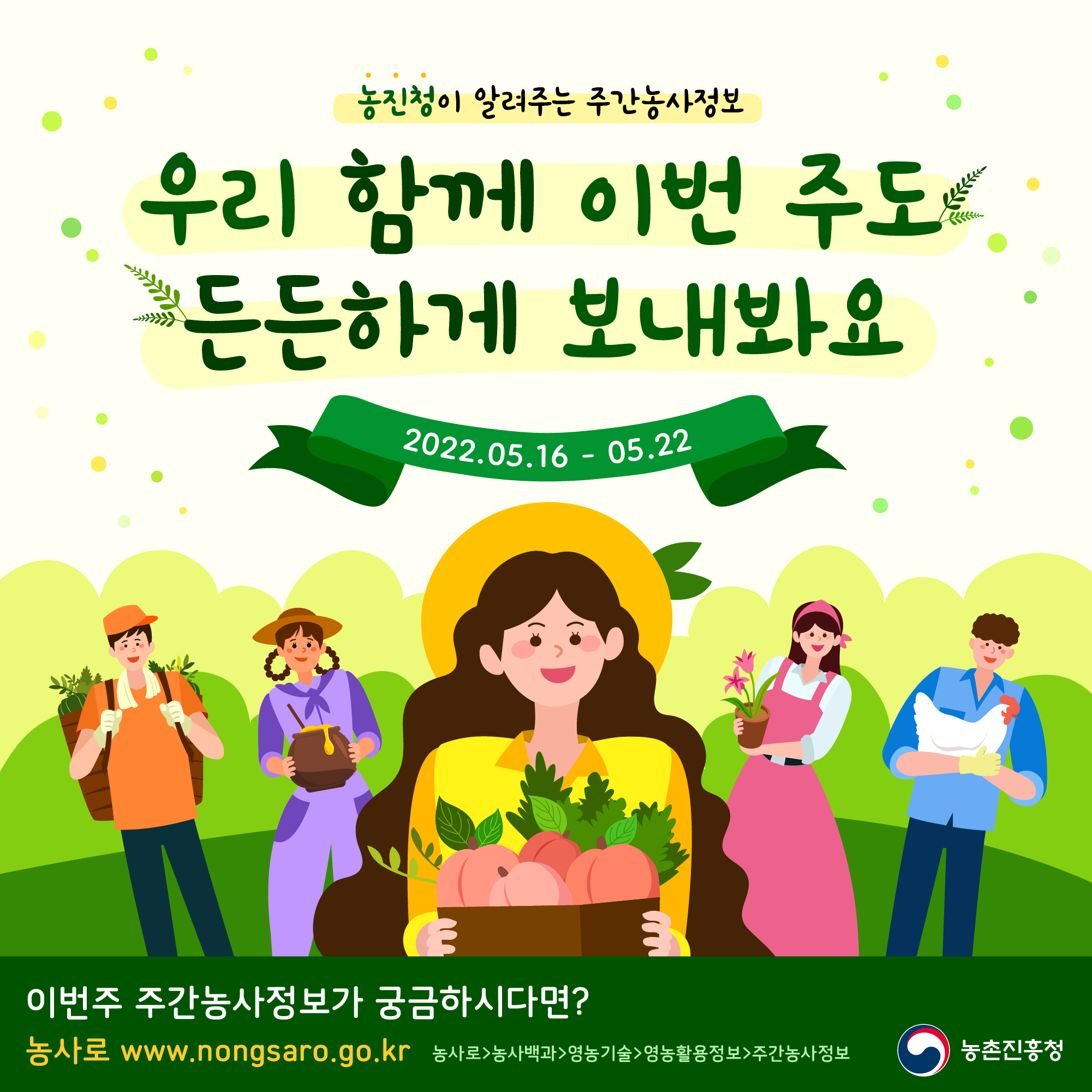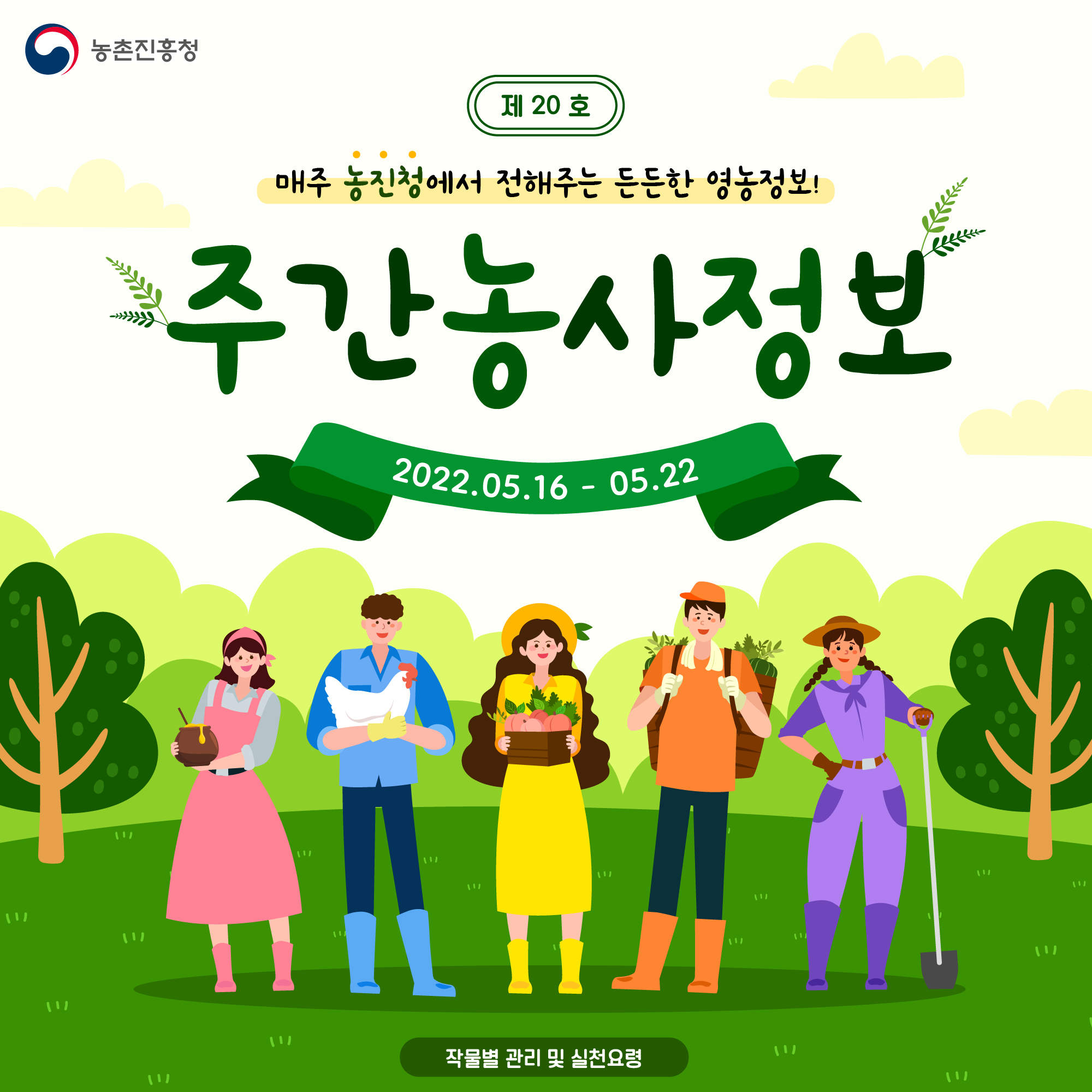 매주 농촌진흥청에서 전해주는 든든한 영농정보! 주간농사정보(5. 16.~ 5. 22.)입니다.