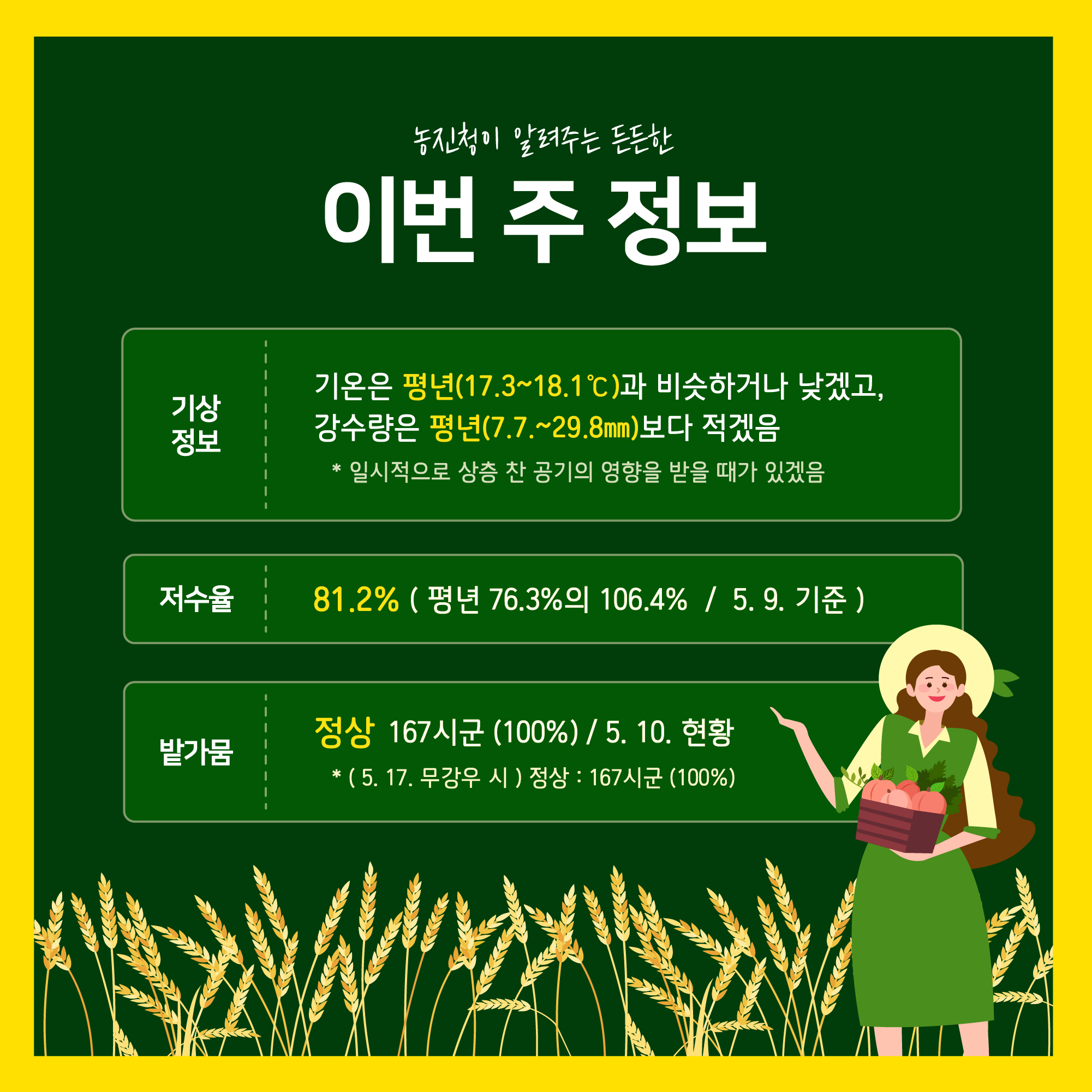 [카드뉴스] 주간농사정보(5. 16.~ 5. 22.)