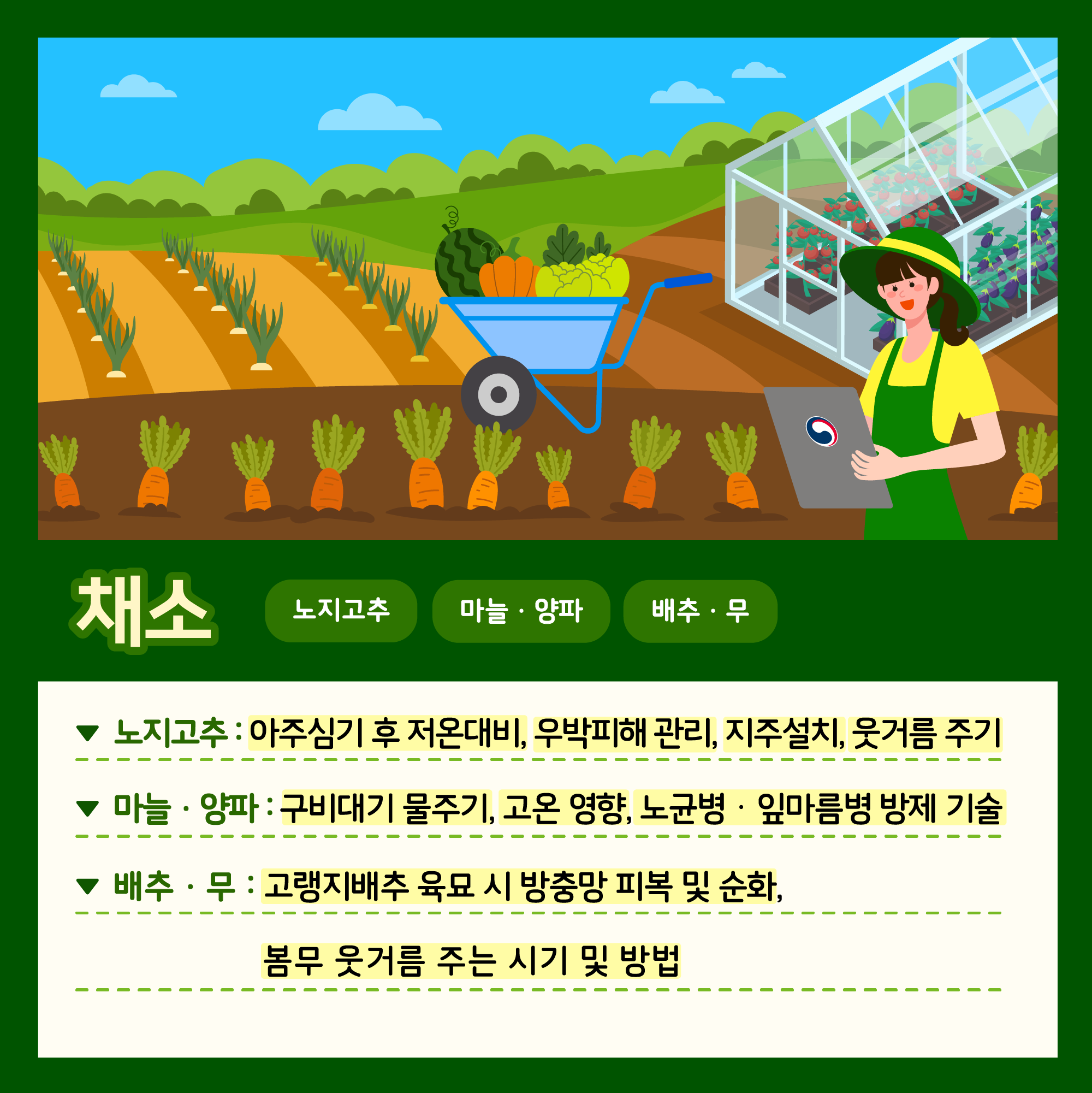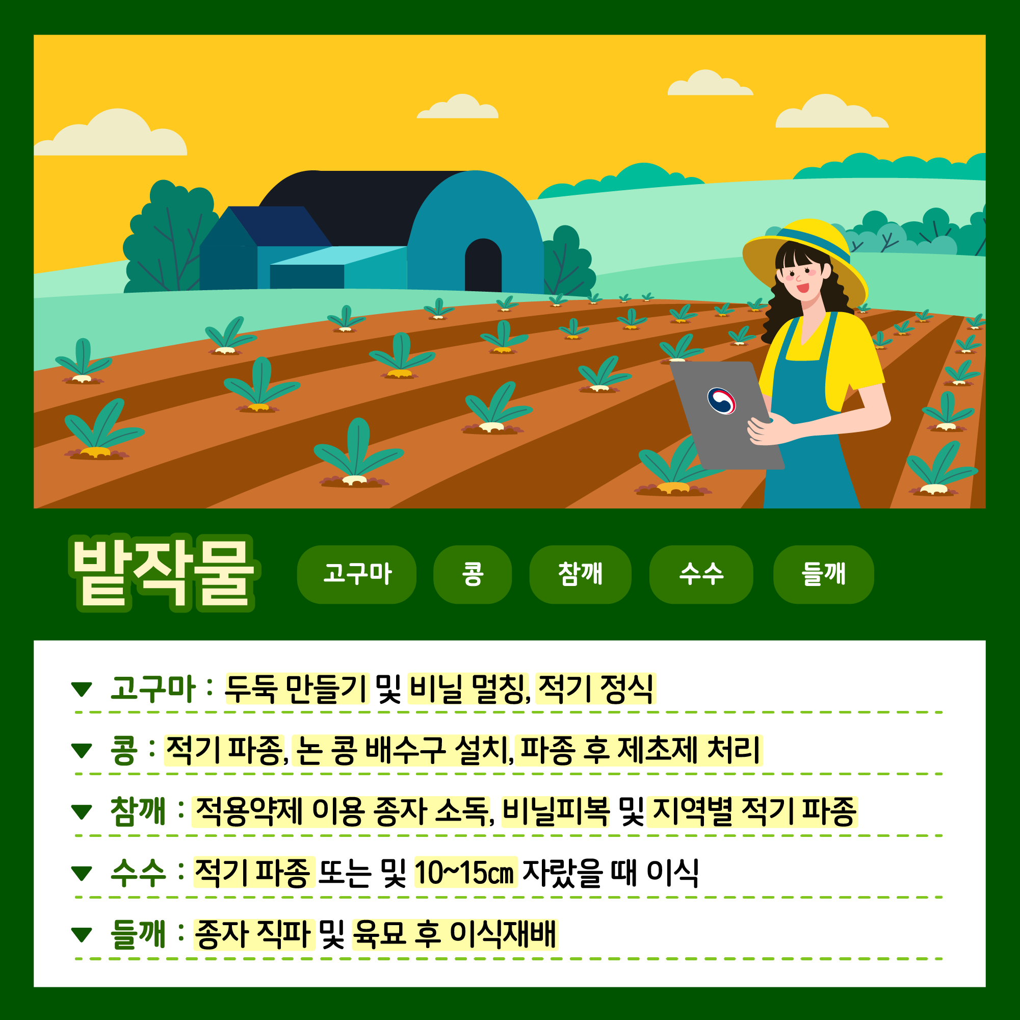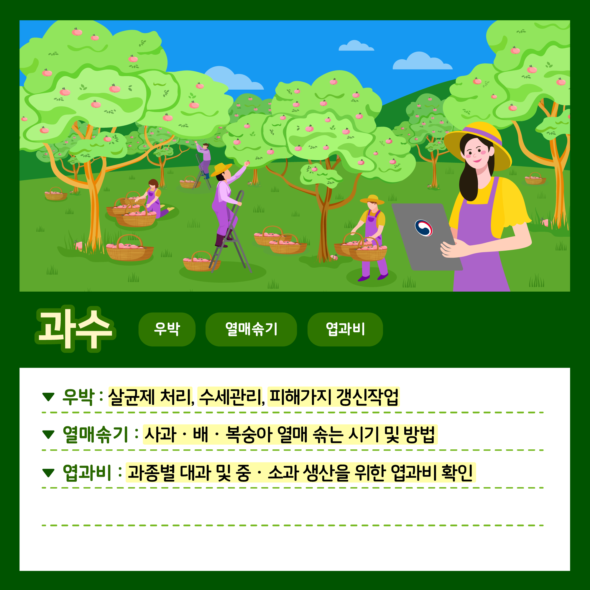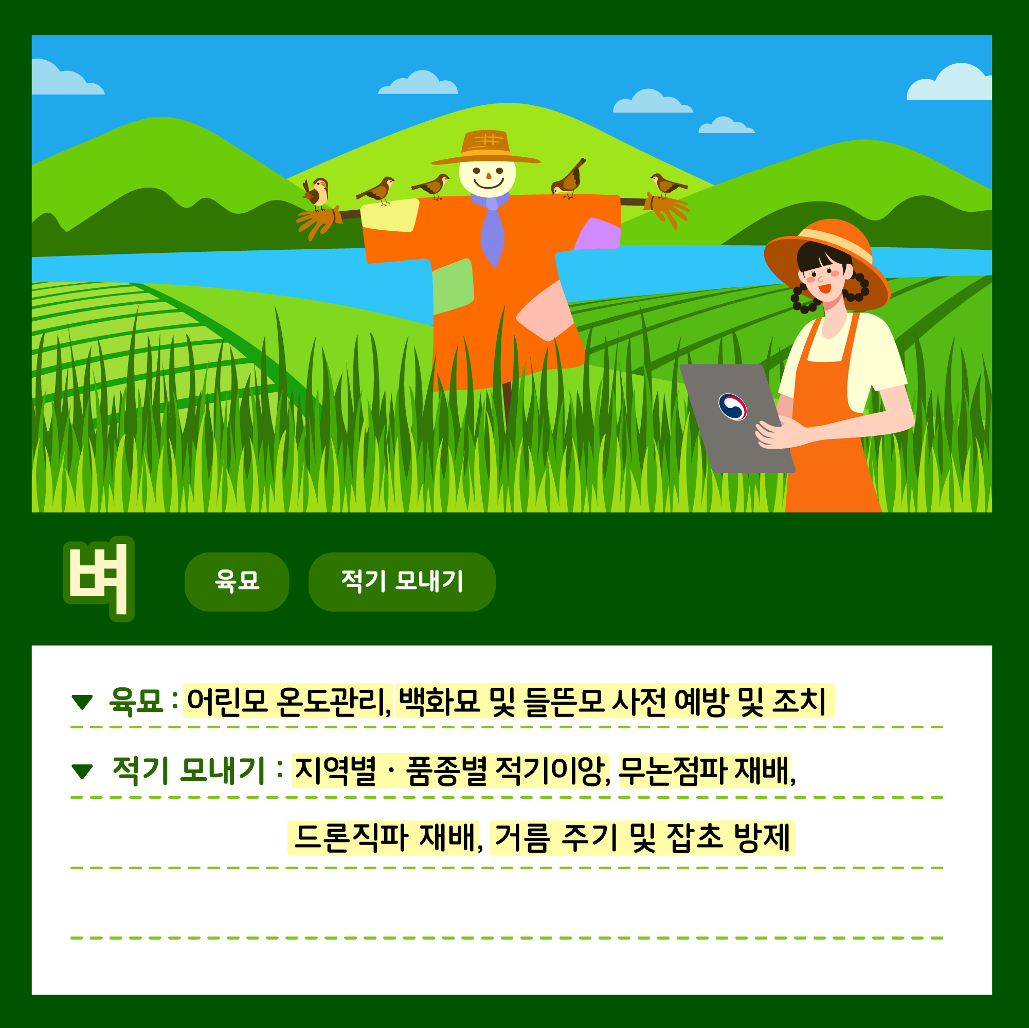 작물별 관리 및 실천요령을 확인하시기 바랍니다.