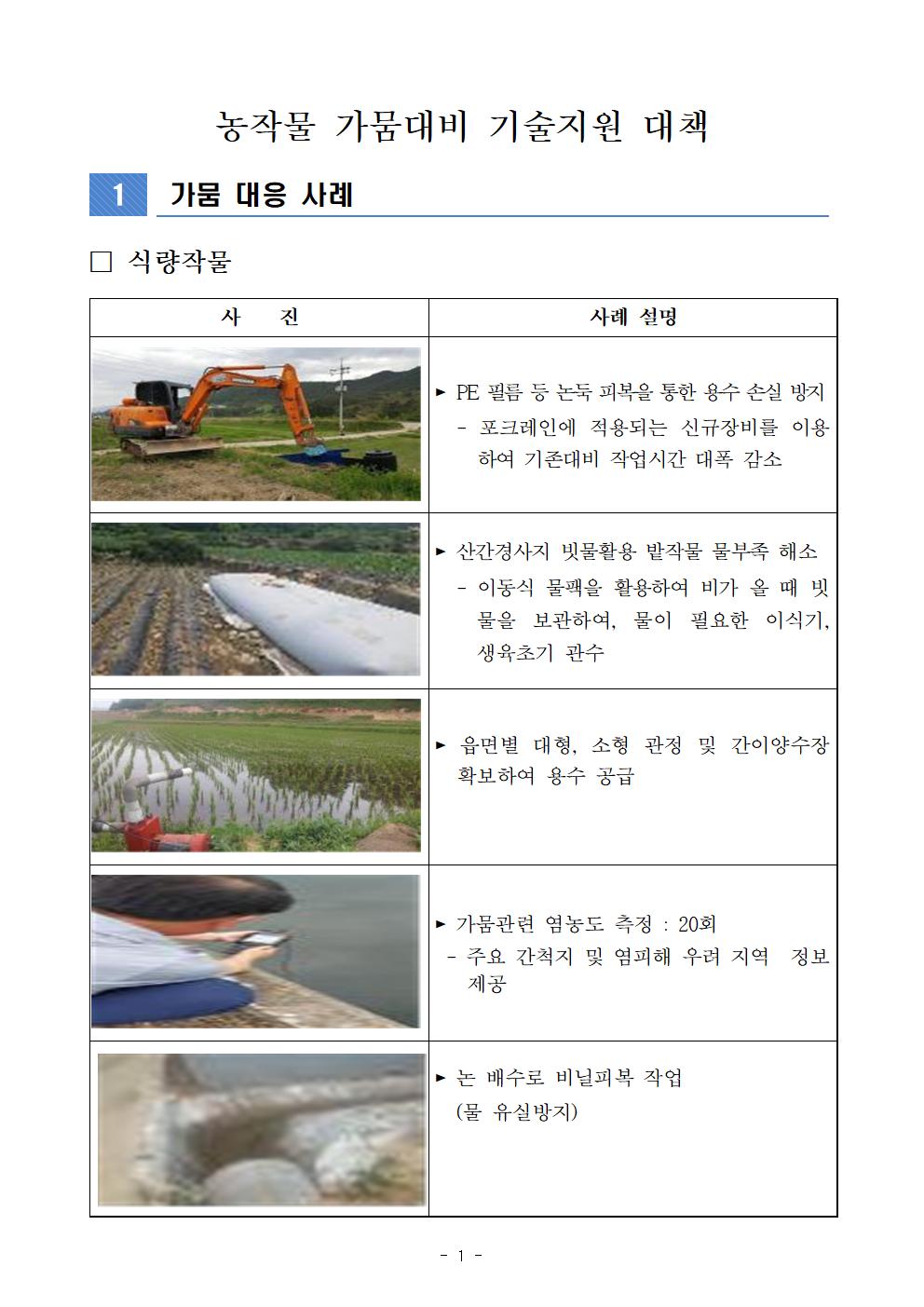 농작물 가뭄대비 기술지원 대책 자료를 붙임과 같이 알려드립니다.