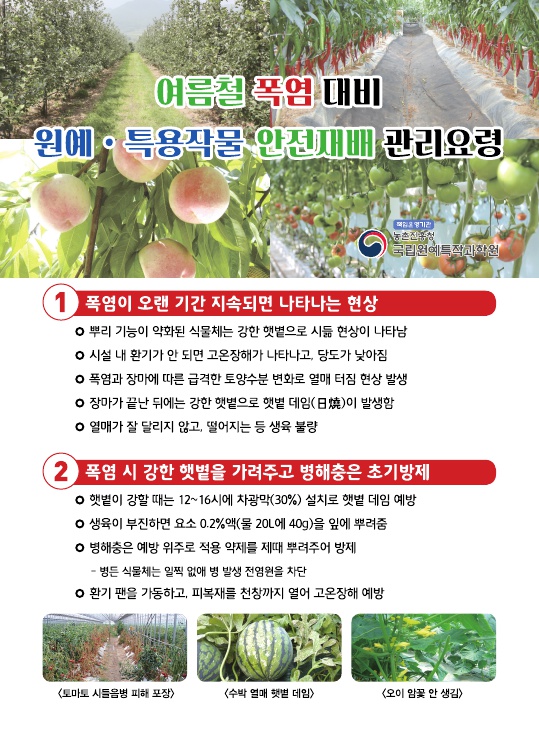 여름철 폭염 대비 원예작물 안전재배 관리요령을 안내드립니다.