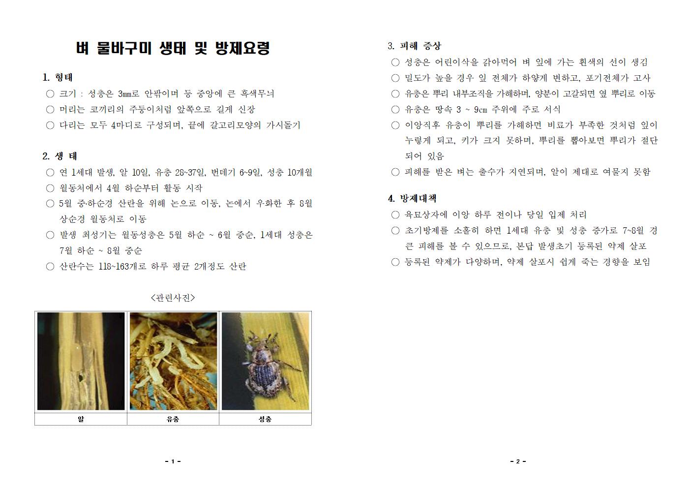 ▶ 벼 병해충 사전 피해 예방을 위한 방제요령 안내