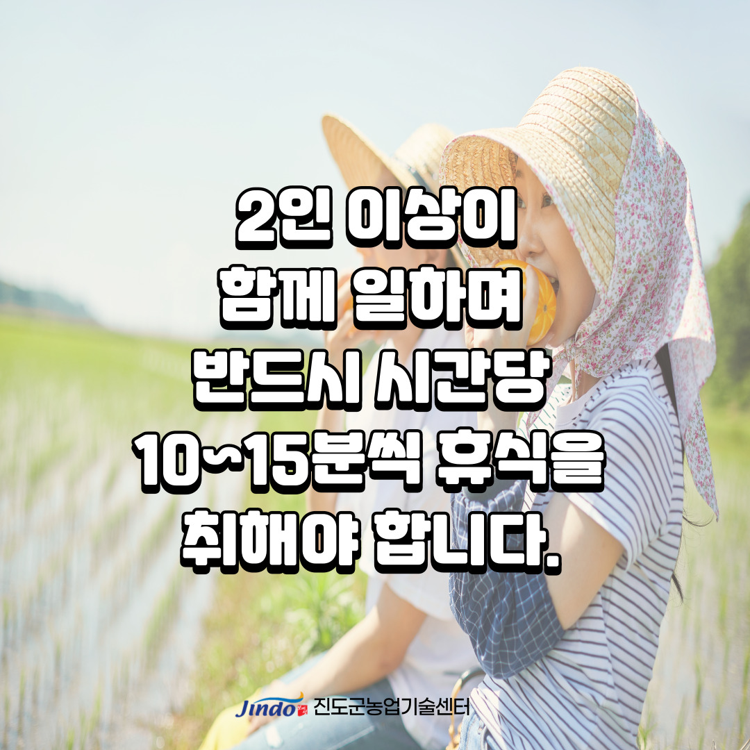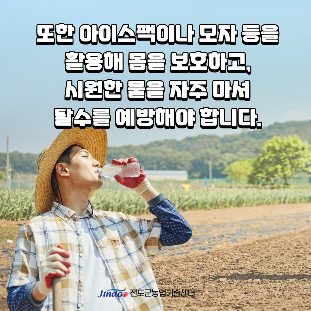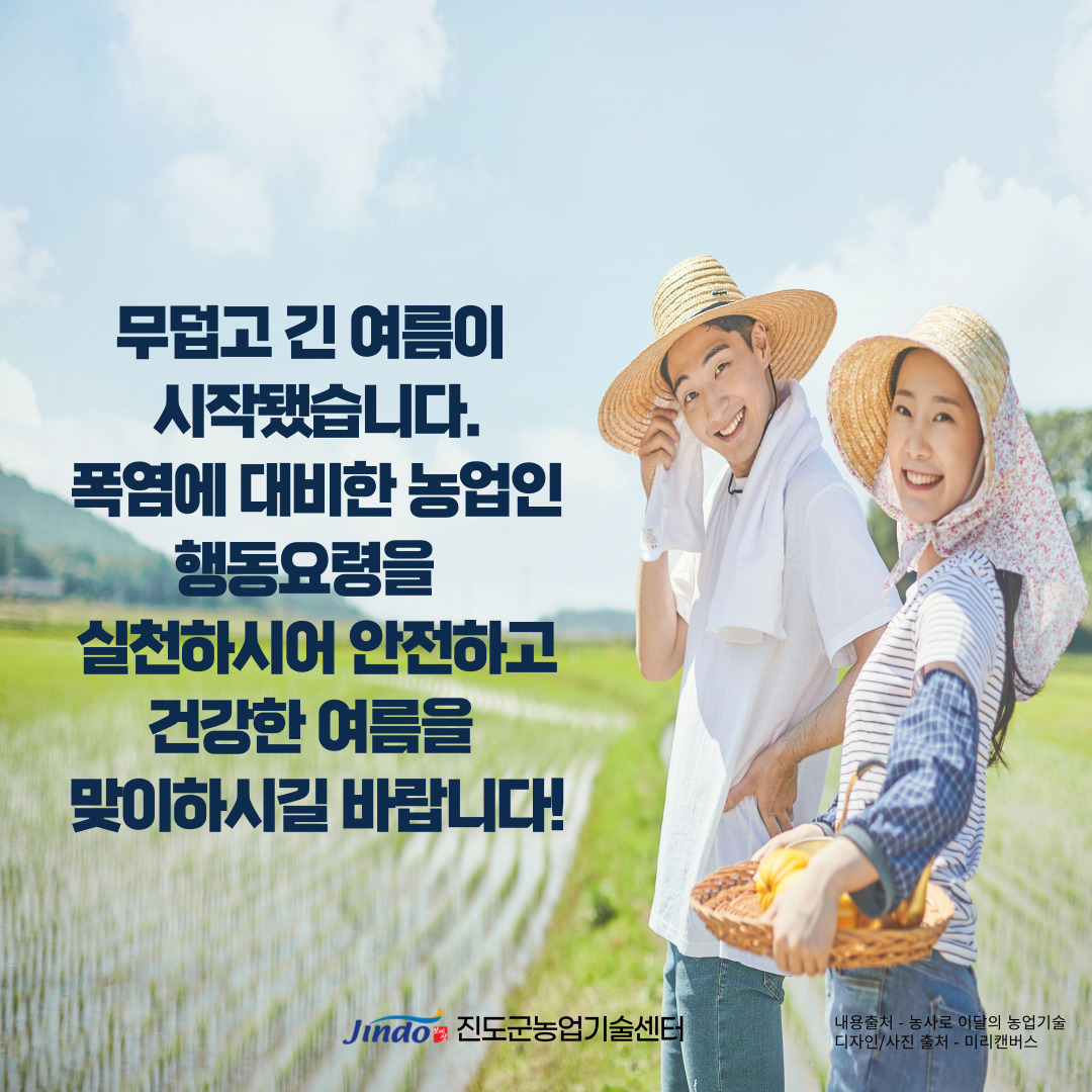 폭염에 대비한 농업인 행동요령을 실천하시어 안전하고 건강한 여름을 맞이하시길 바랍니다!
