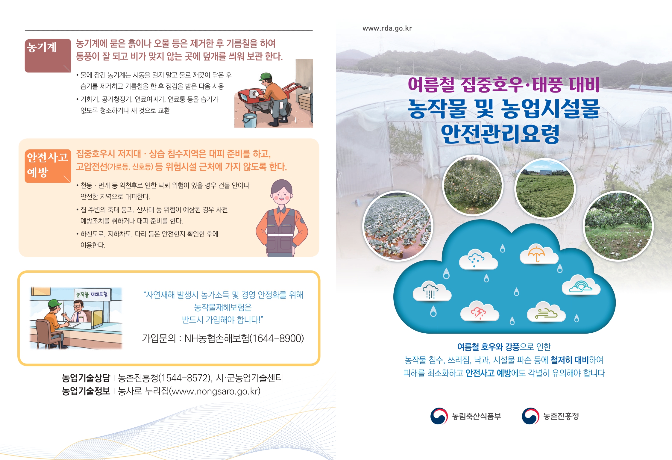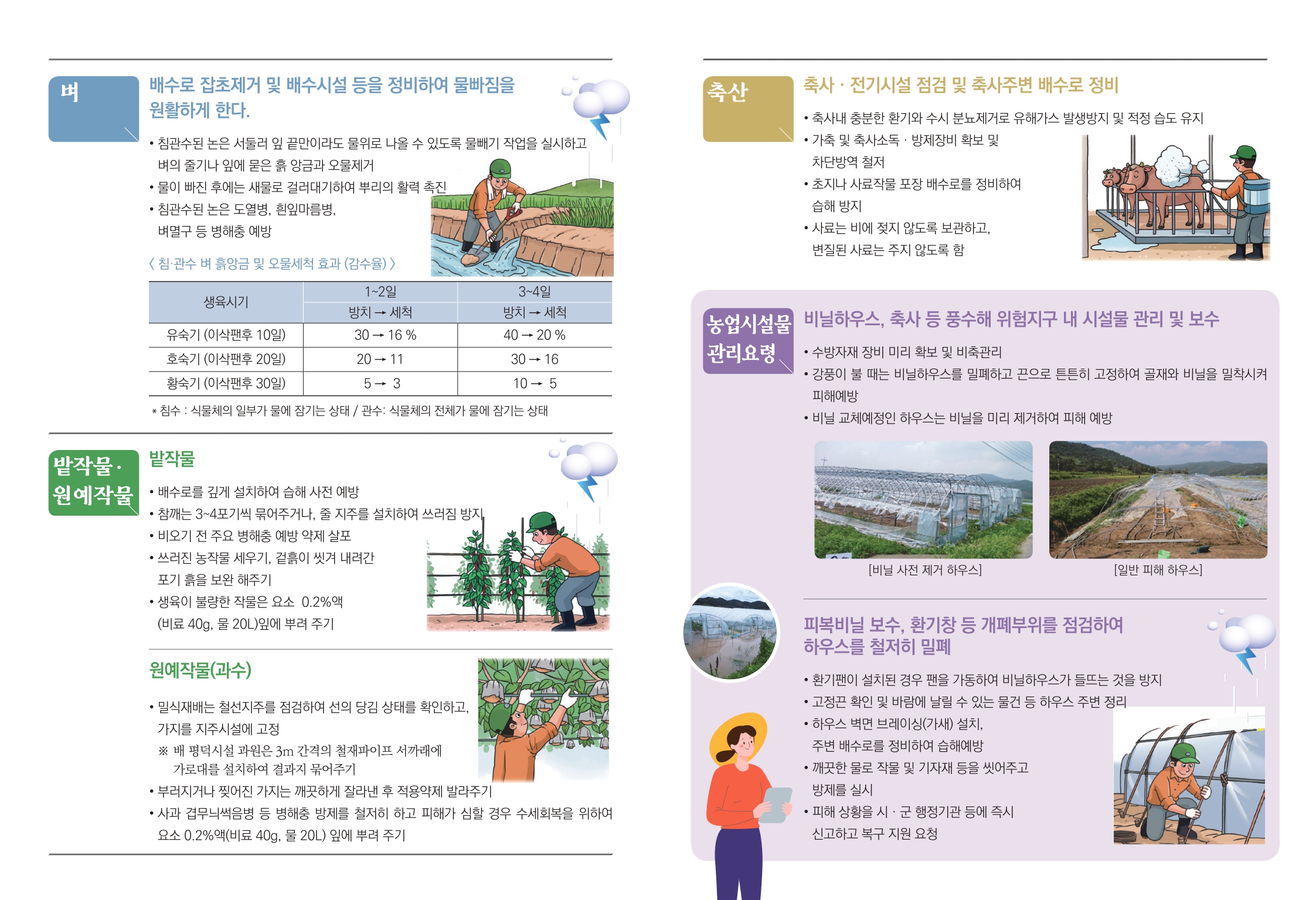 농작물 및 농업시설물 피해 최소화하기 위한 관리 요령 안내해드립니다.