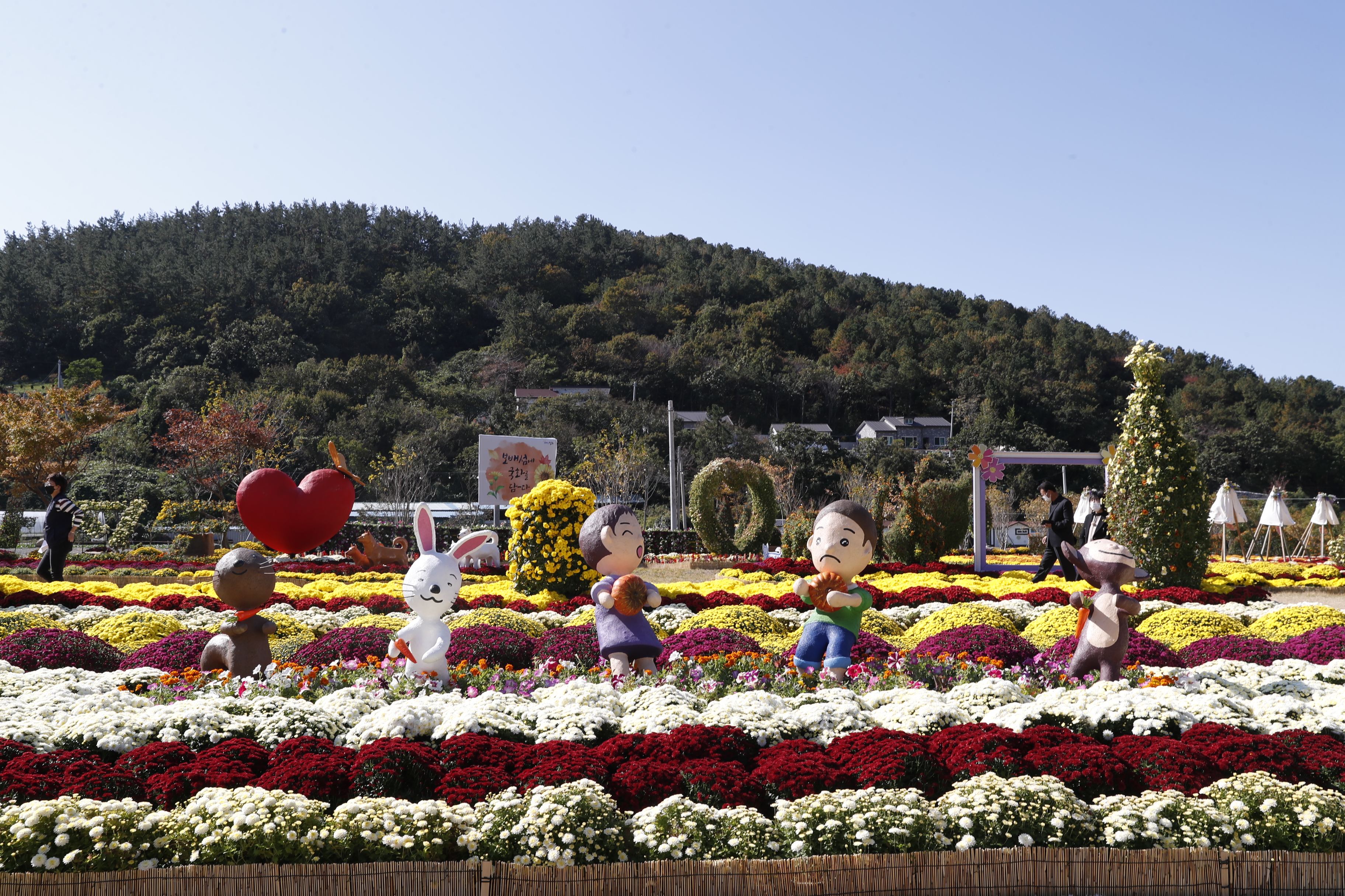 ‘보배섬에 국화를 담다’라는 주제로 열리는 국화전시회는 진도개, 백조, 하트조형물 등을 포함한 형형색색의 조형작품 2만여점이 진도개테마파크에 마련됐다.