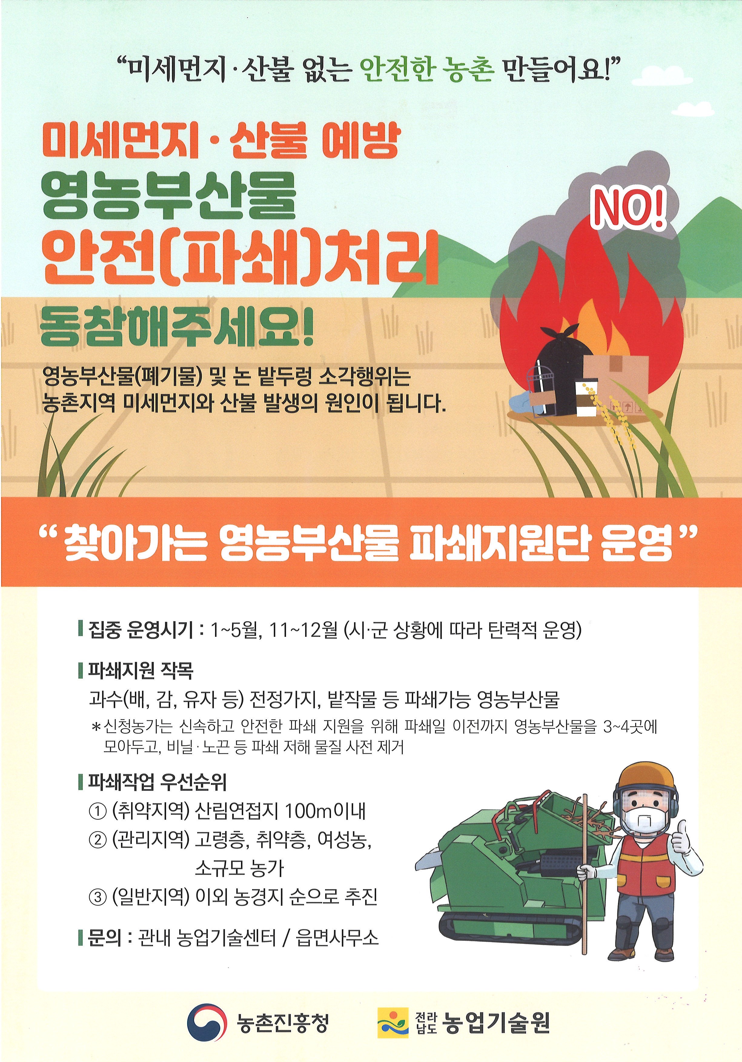 영농부산물 안전 '파쇄'처리 동참해주세요.
