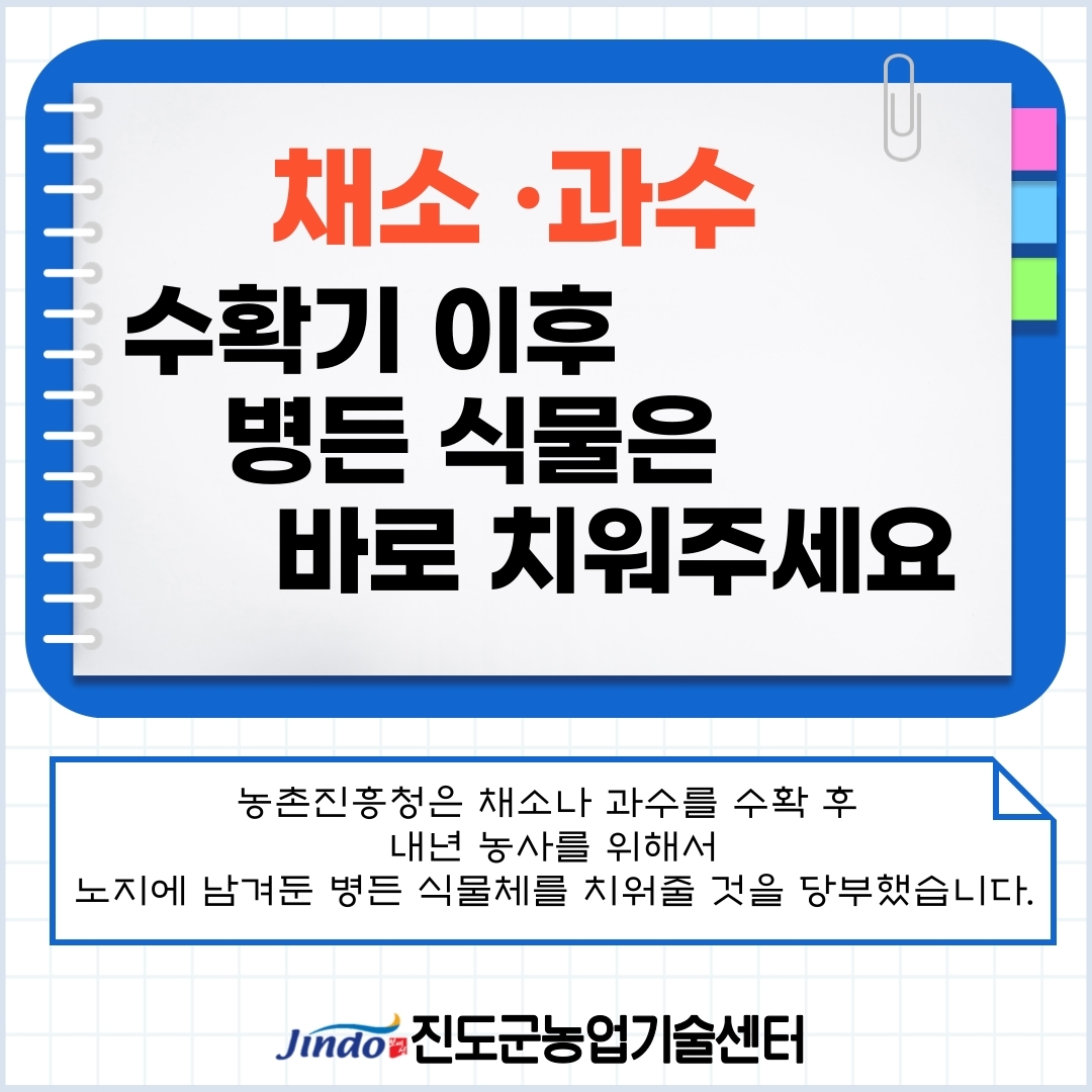 채소·과수 수확기 이후, 병든 식물은 바로 치워주세요!