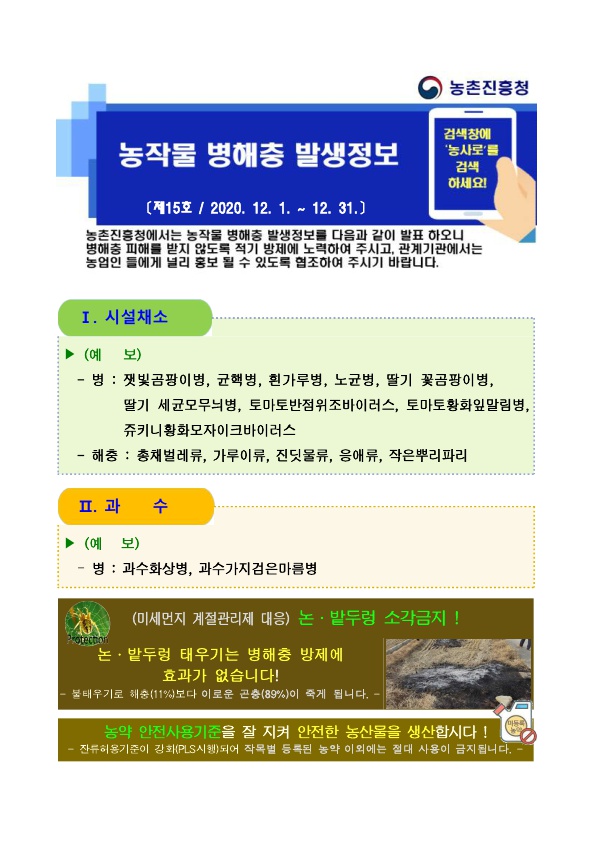 농작물 병해충 발생정보 제 15호(2020.12.1~12.31.)