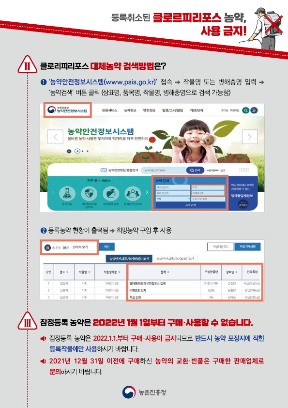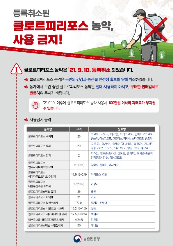 클로르피리포스 함유 농약 사용금지 안내