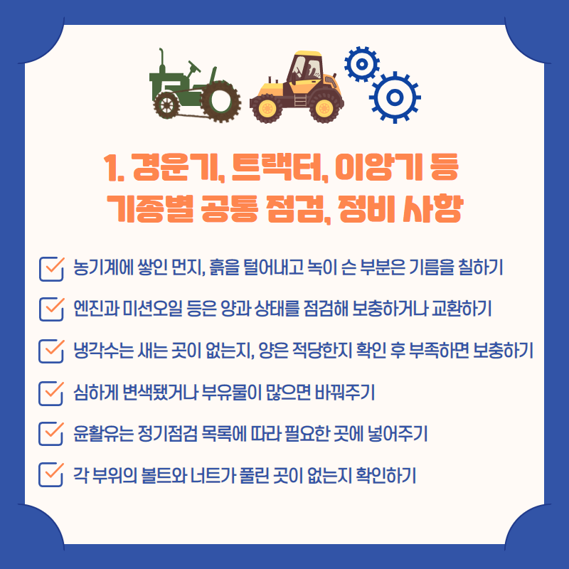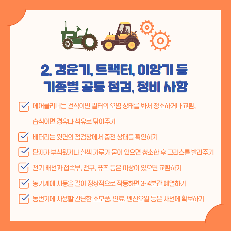 (카드뉴스) 영농철 농기계 사용 꼼꼼한 점검, 정비 필수
