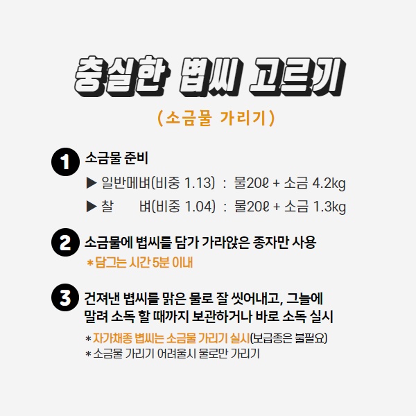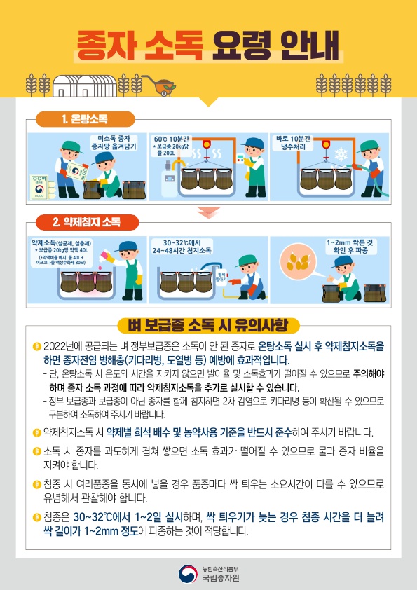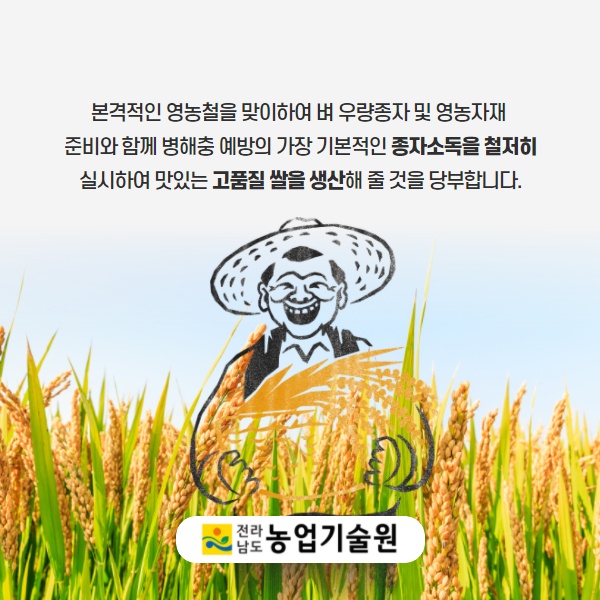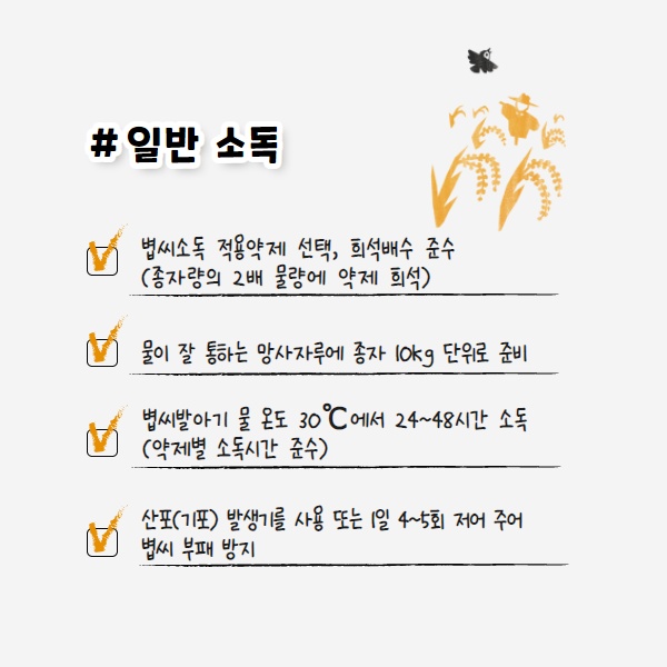 ▶ 고품질 벼농사의 시작은 종자소독부터!