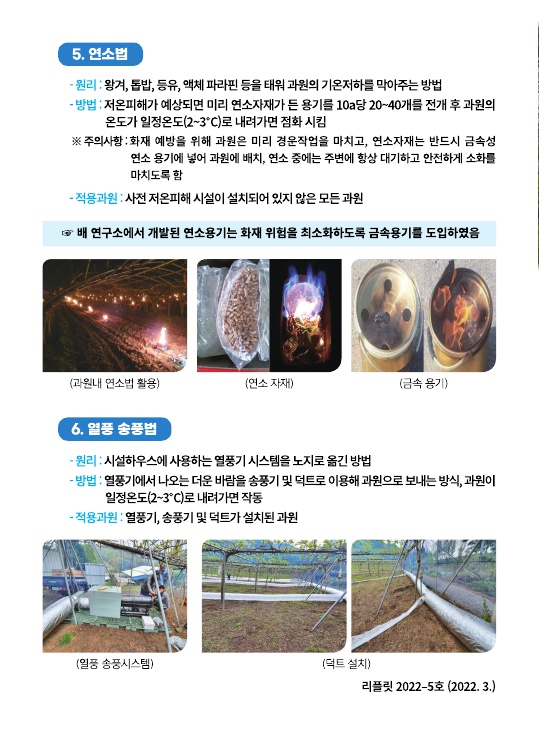 ▶ 개화기 전·후 저온 및 서리피해 방지