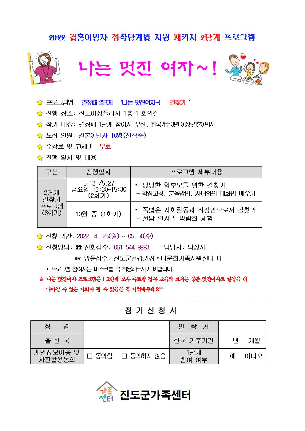 2022 결혼이민자 정착단계별 지원패키지 '나는 멋진 여자~!' 2단계프로그램 신청 안내