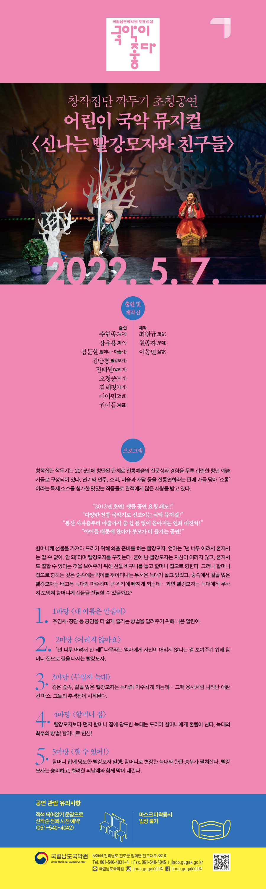 제목 [국립남도국악원] 토요상설 ‘국악이 좋다!’ 『창작집단 깍두기 초청공연 <어린이 국악 뮤지컬 “신나는 빨강모자와 친구들”>』