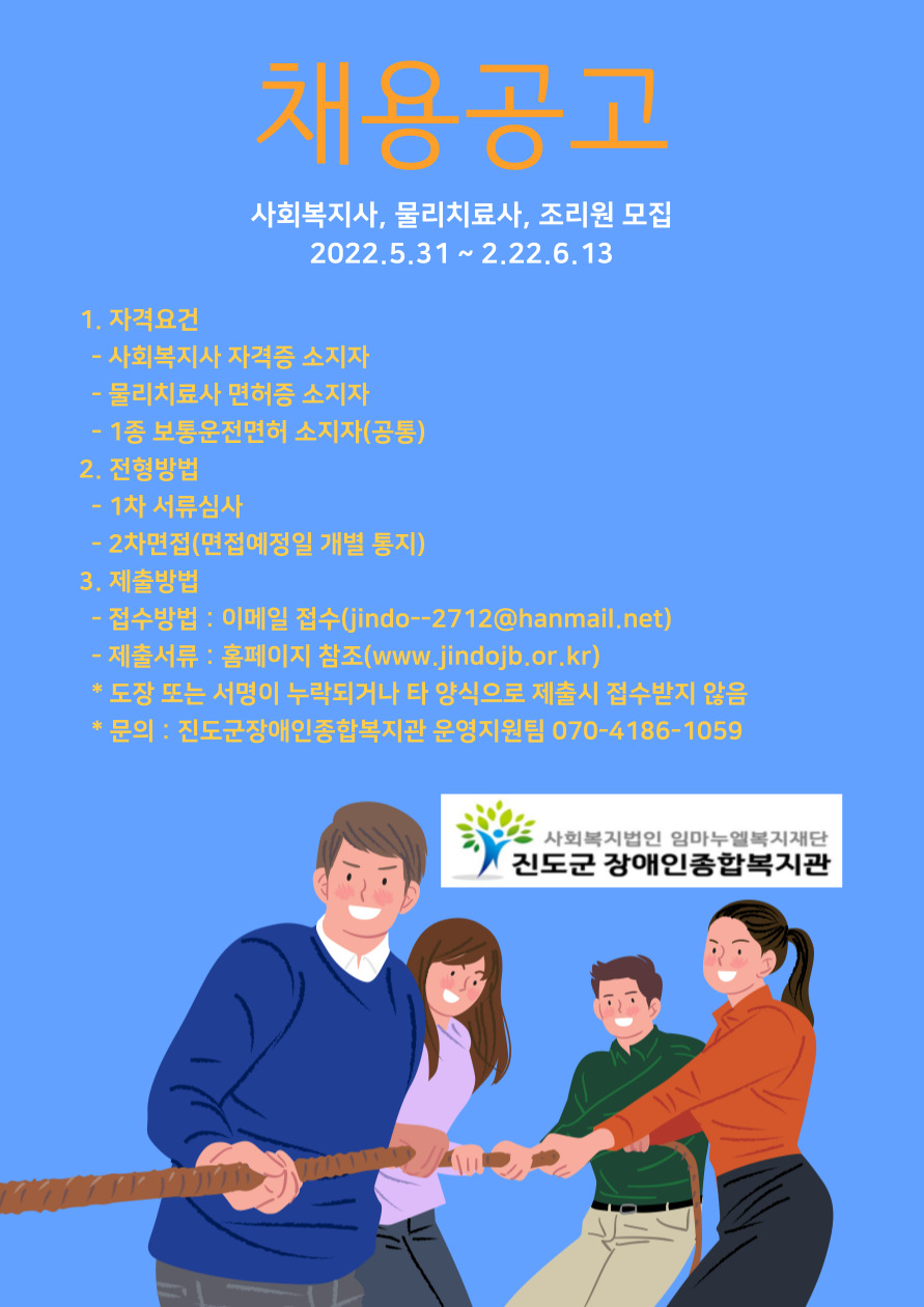 진도군장애인종합복지관 직원채용 재공고