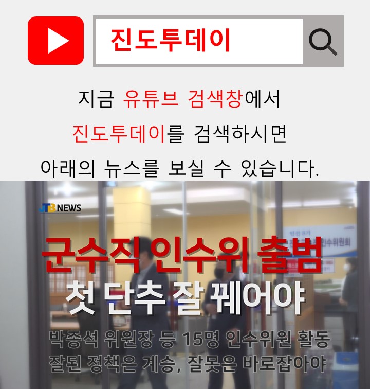 ☞뉴스 영상은 JTB NEWS 홈페이지(www.jindotoday.com) 유튜브를 통해서 확인가능합니다.
