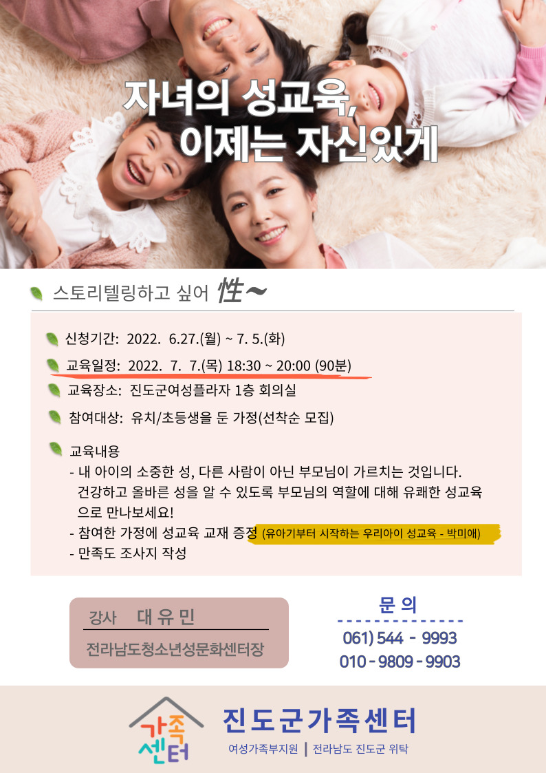 ♣가족센터♣ 유아기부터 시작하는 우리 아이 성교육 참여자 모집