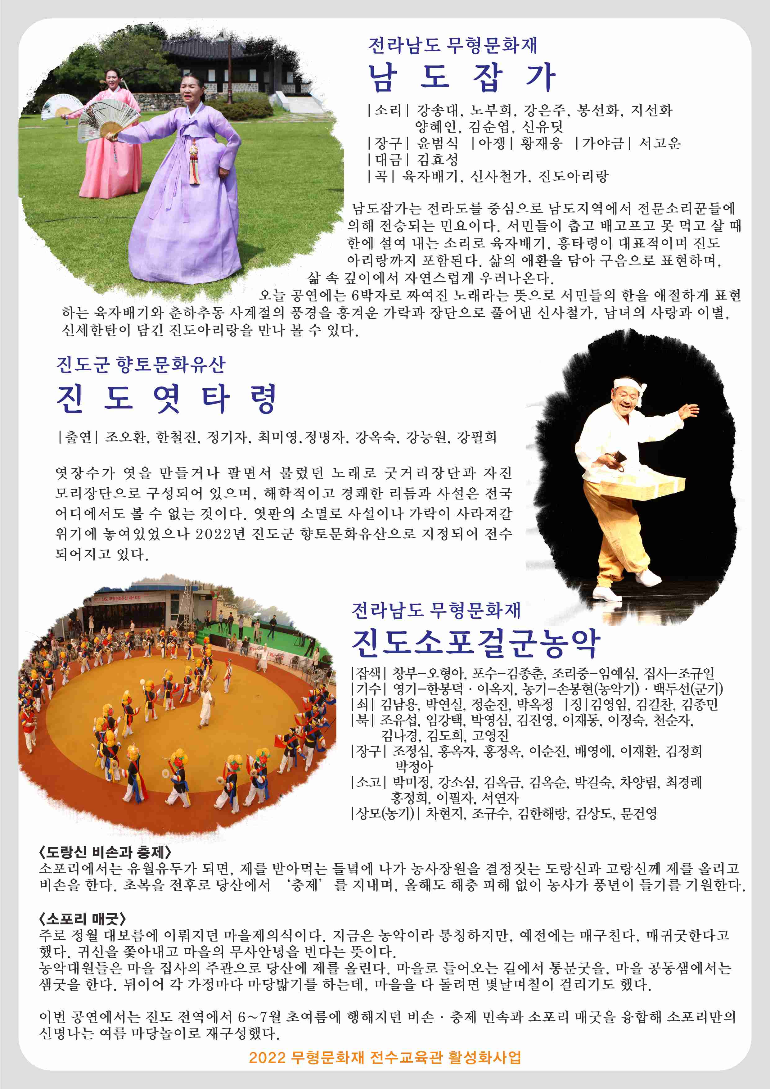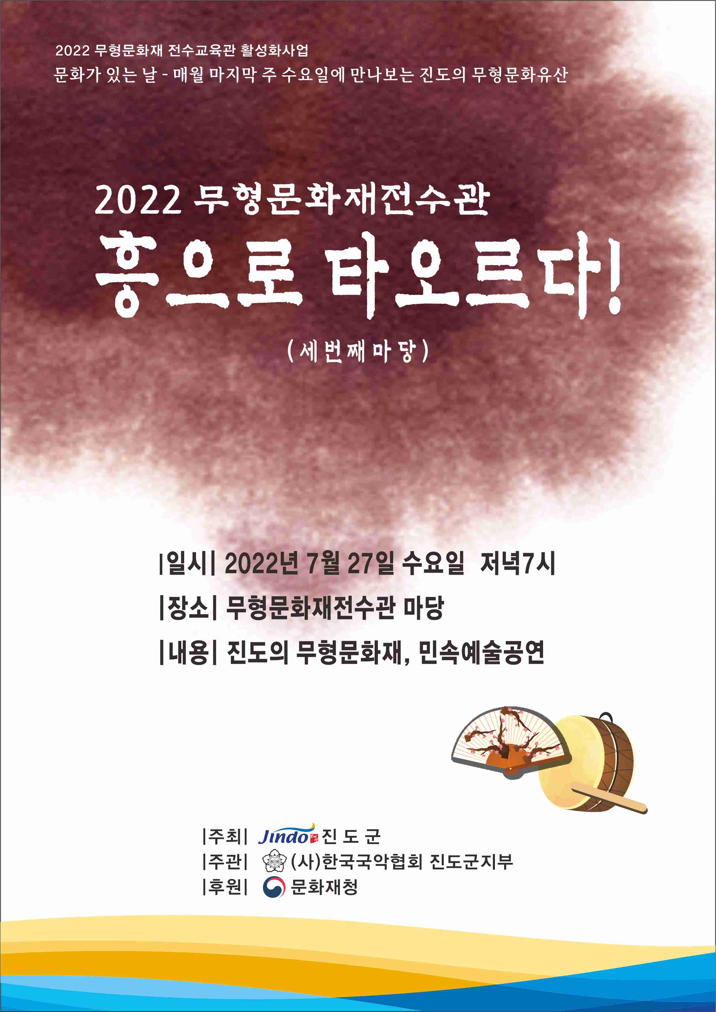문화가 있는날(매달 마지막 주 수요일) 만나보는 진도의 무형문화유산 공연에 많은 관심 부탁드립니다.