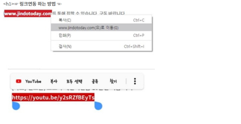 (pc) 해당 도메인을 마우스 드래그 전체지정후 오른쪽 버튼 클릭