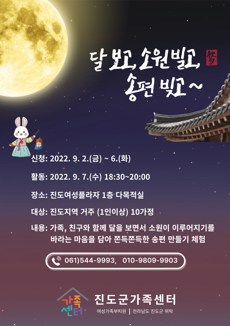 ♣가족센터♣ 9월 가족 사랑의 날 - 달 보고, 소원 빌고, 송편 빚고~ 프로그램 참여자 모집