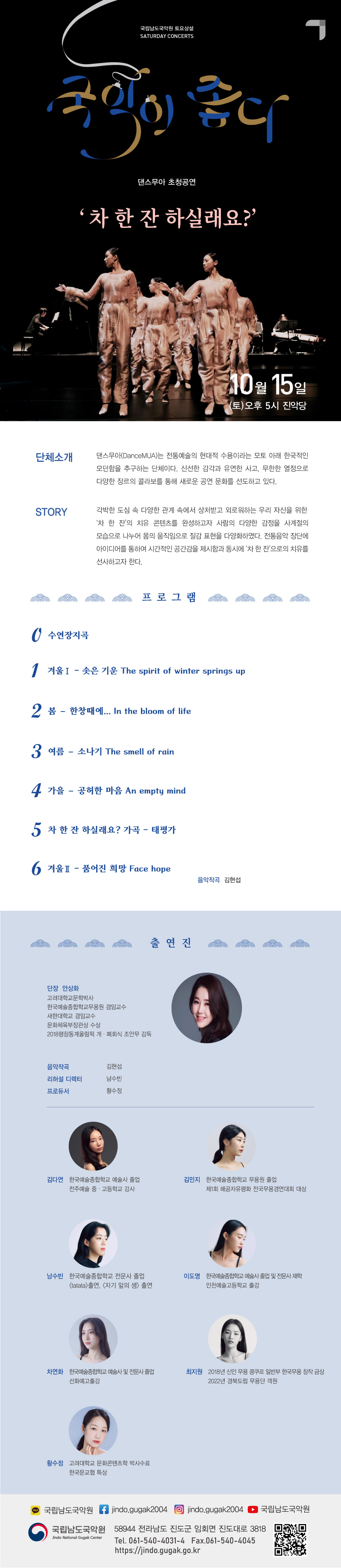 10월 셋째 주 토요상설 ‘국악이 좋다!’는 댄스무아 초청공연 <차 한 잔 하실래요?>입니다.