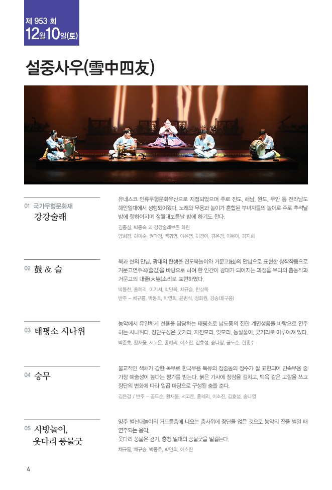 [진도토요민속여행] 제953회 진도토요민속여행 상설 공연 "설중사우" 안내