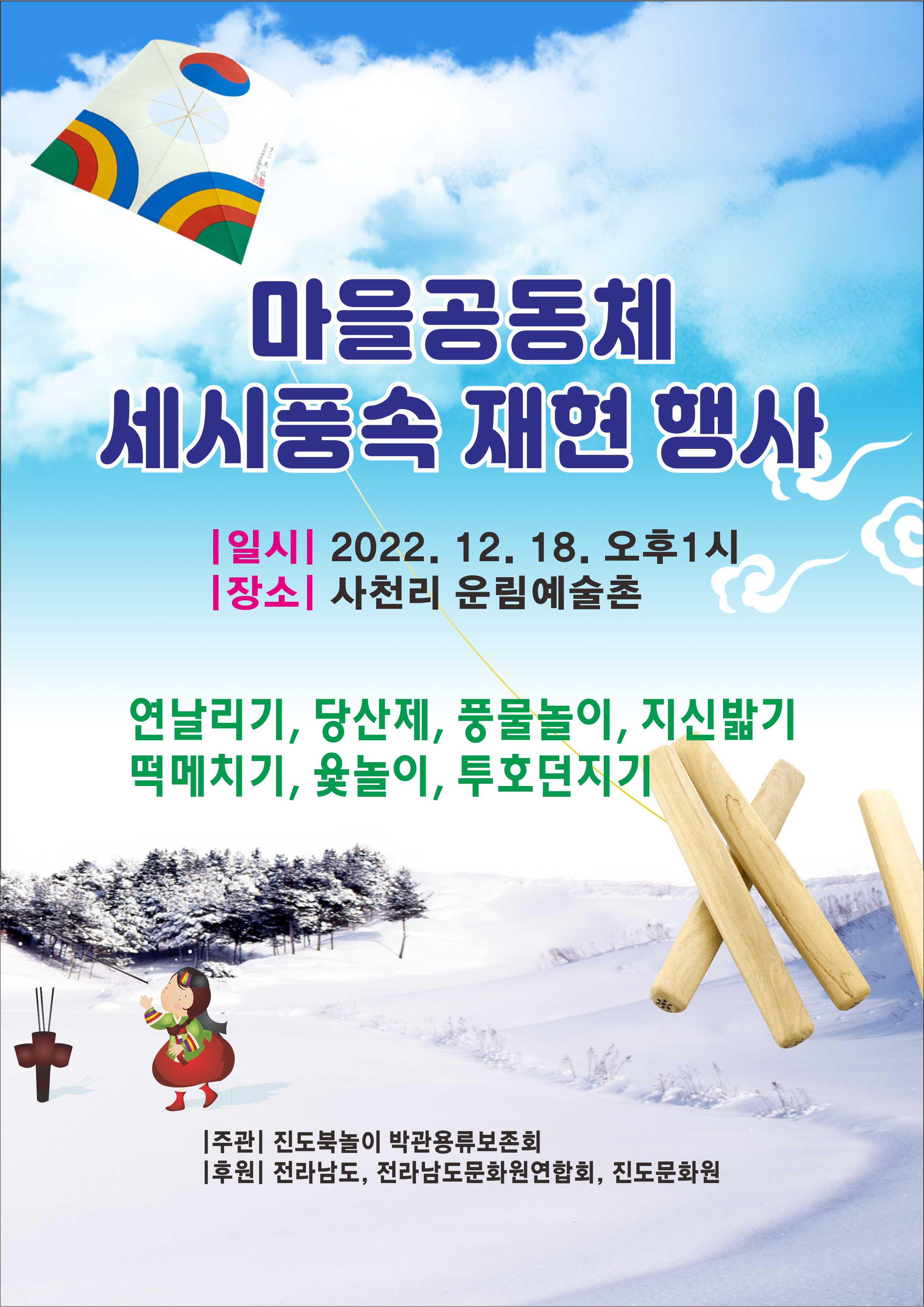 가족 모두 함께 할 수 있는 즐길거리와 볼거리, 먹거리!! 2022년 12월 18일 오후 1시 마을 공동체 세시풍속 제현행사에 놀러오세요~