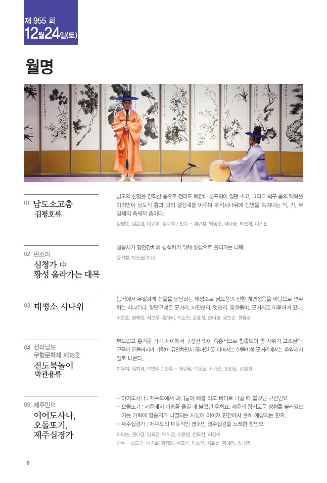제955회 진도토요민속여행 상설공연이 "월명"을 주제로 펼쳐집니다.