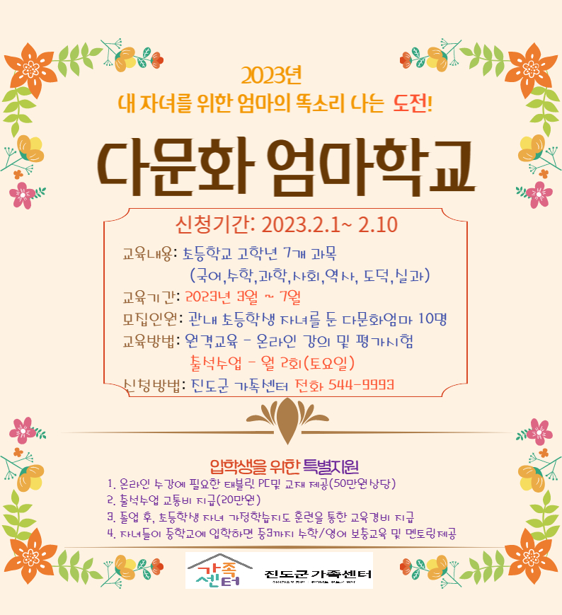 2023년 다문화엄마학교 2기 신입생 모집 안내