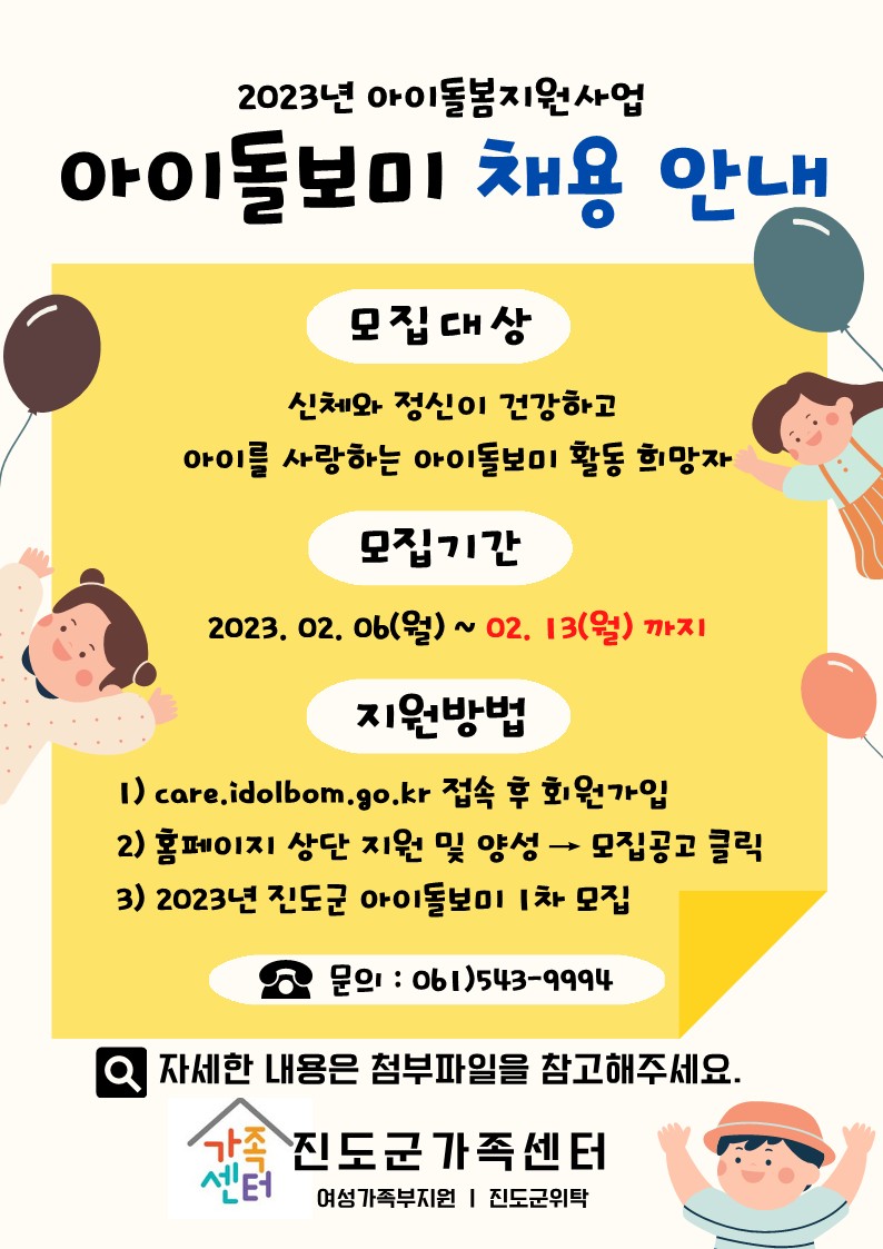 * 진도군가족센터 홈페이지 공고란에서 자세한 내용 확인해주세요.